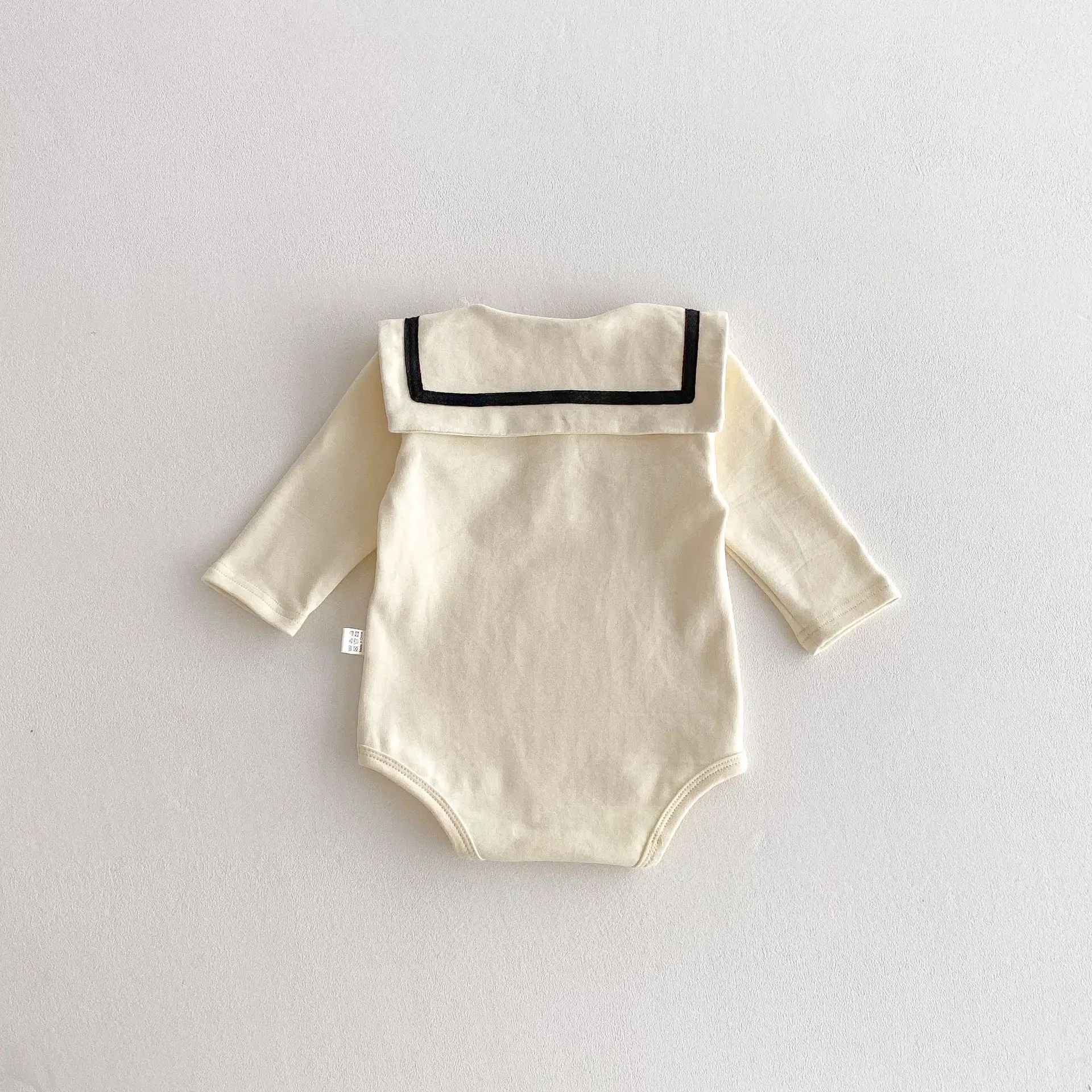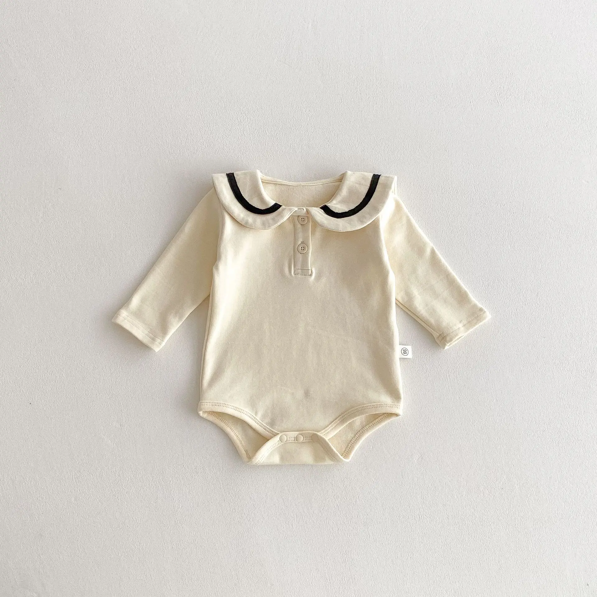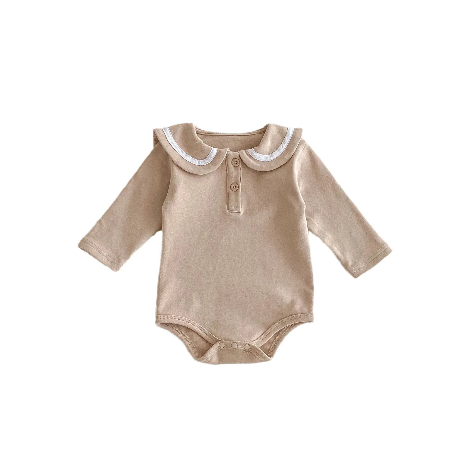 Korean-Style Inspired INS Kids Clothing Cute Preppy Long-Sleeved Lapel One-Piece Harem Baby Rompers for Spring Fall Button