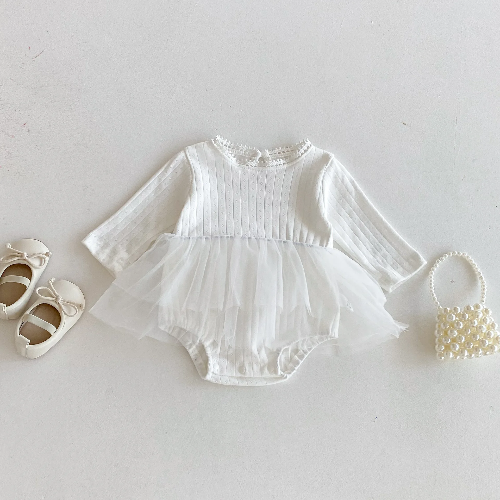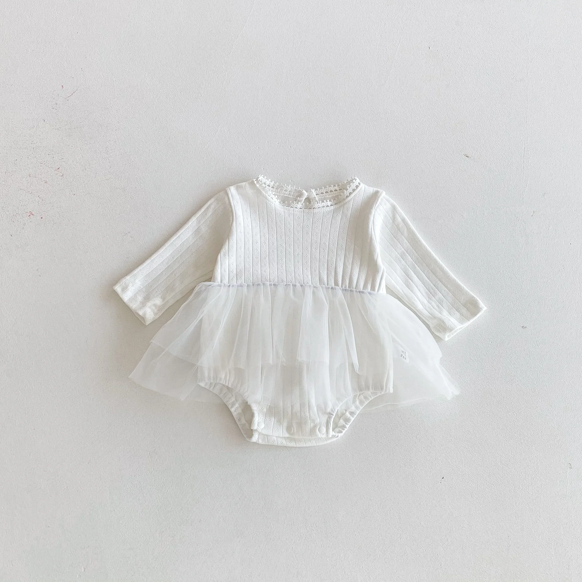 Spring Autumn Girls' Children's One-Piece Tulle Sweet Princess Style Lace Puffy Solid Dress Stylish Plain Dyed