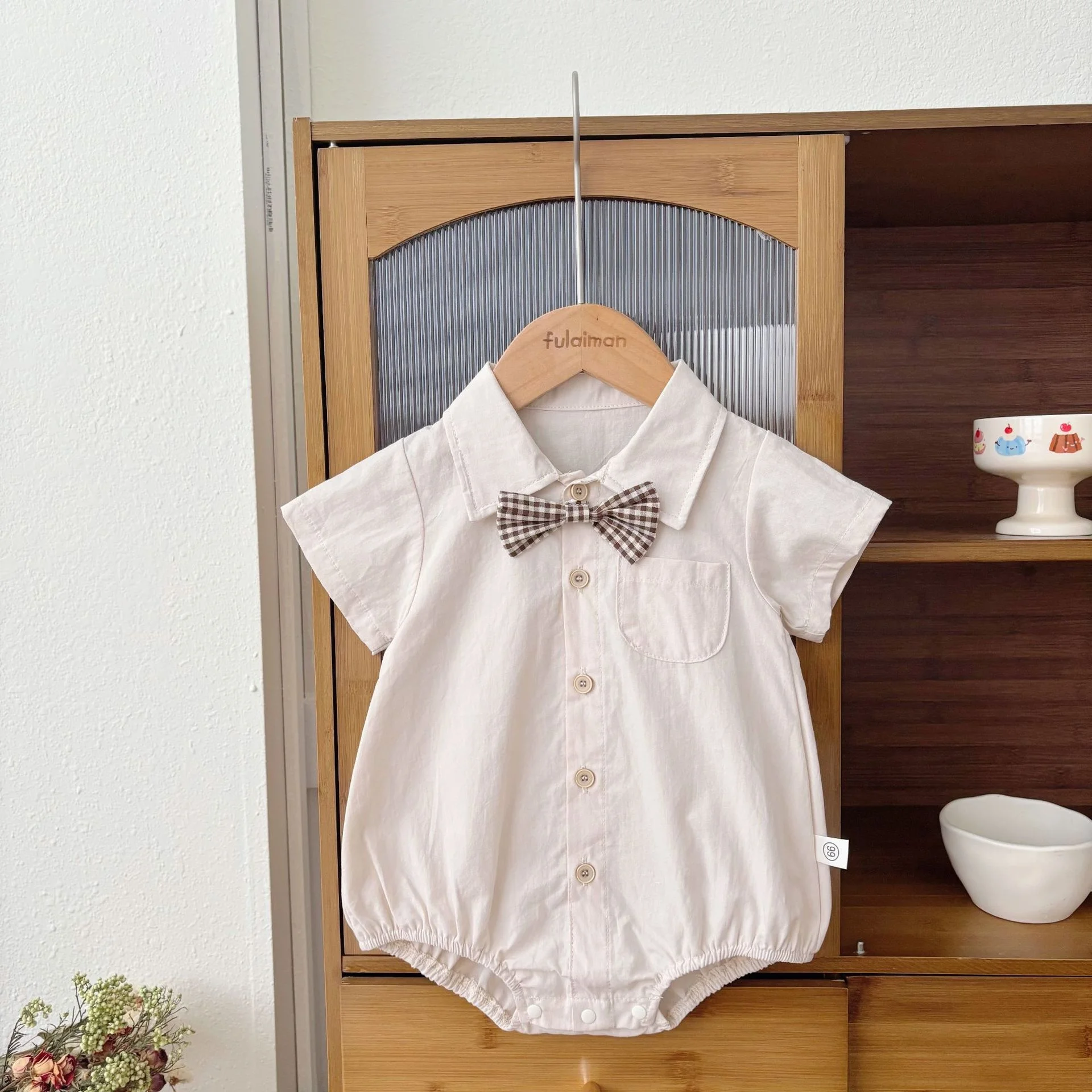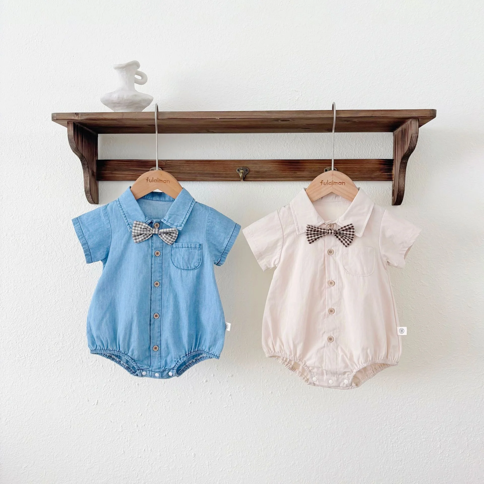 Solid Baby Romper Boys Short Sleeve Gentleman Bow Tie Shirt Summer Formal Wear Baby Rompers
