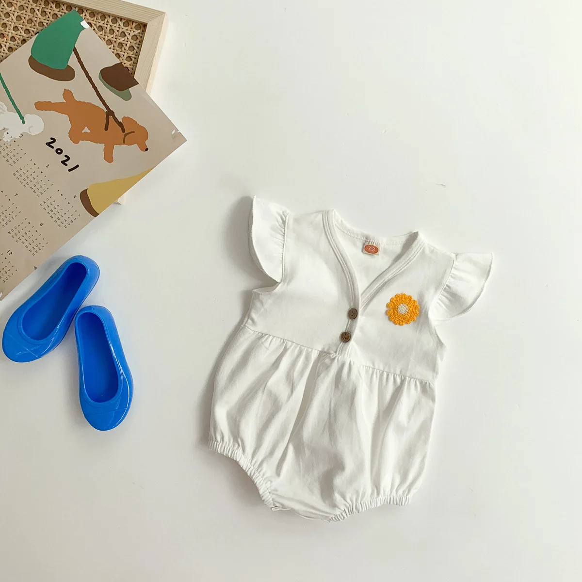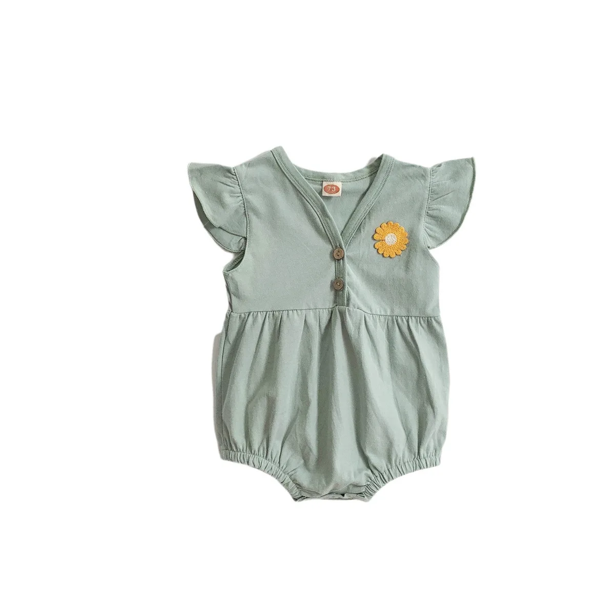 Summer ODM Casual Knitted Seamless Jumpsuit Princess Flying Sleeve Triangle Bodysuit Plain Baby Rompers