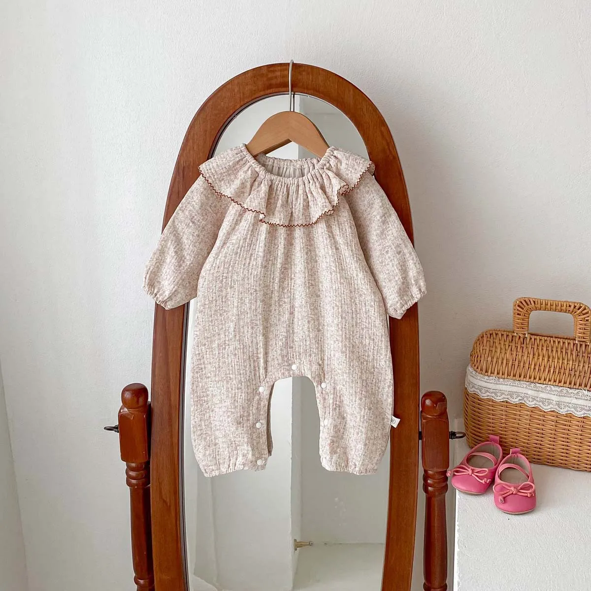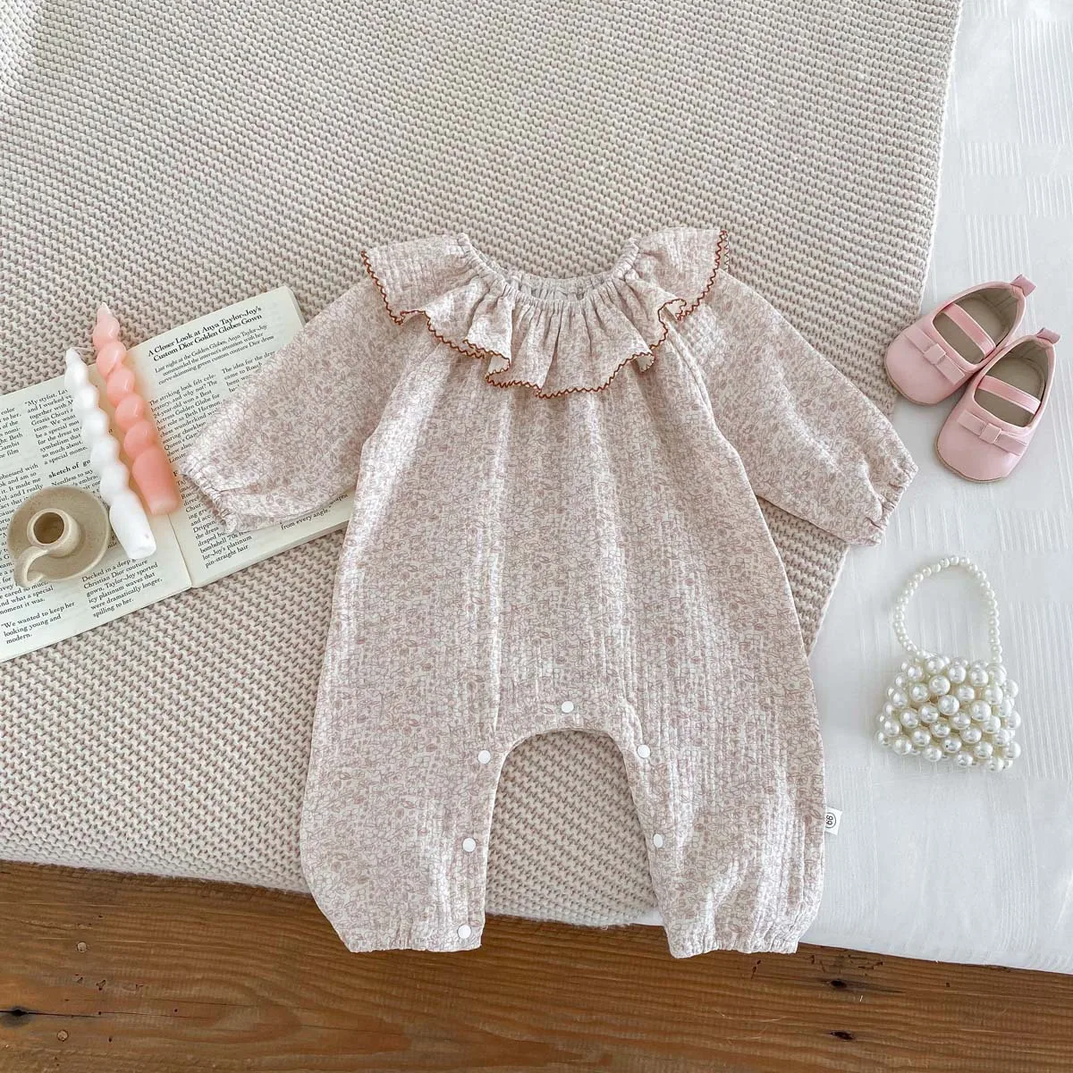 Autumn Cute Korean-Style Infant 100% Cotton Floral Pattern Ruffled Button Closure Baby Girl Rompers ODM