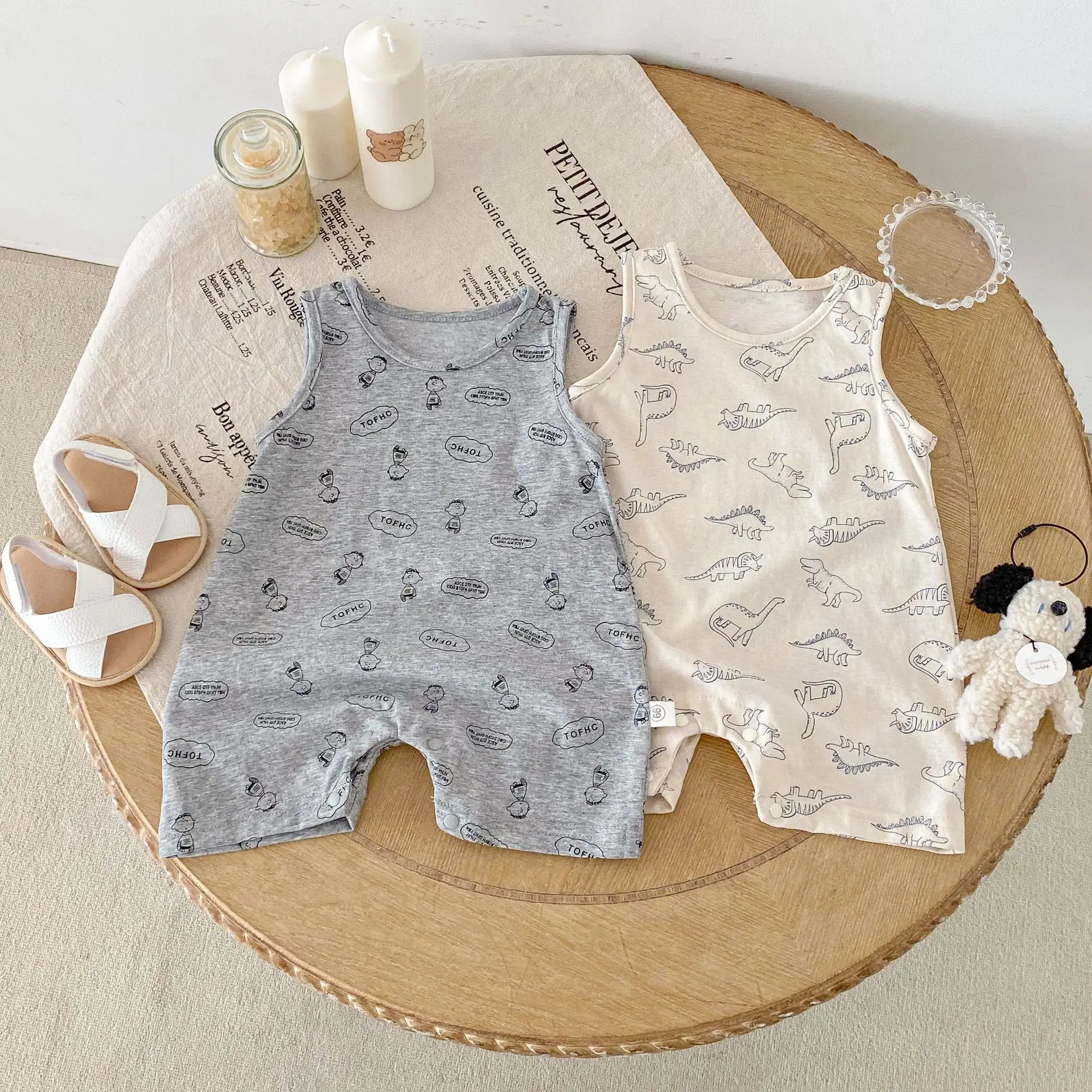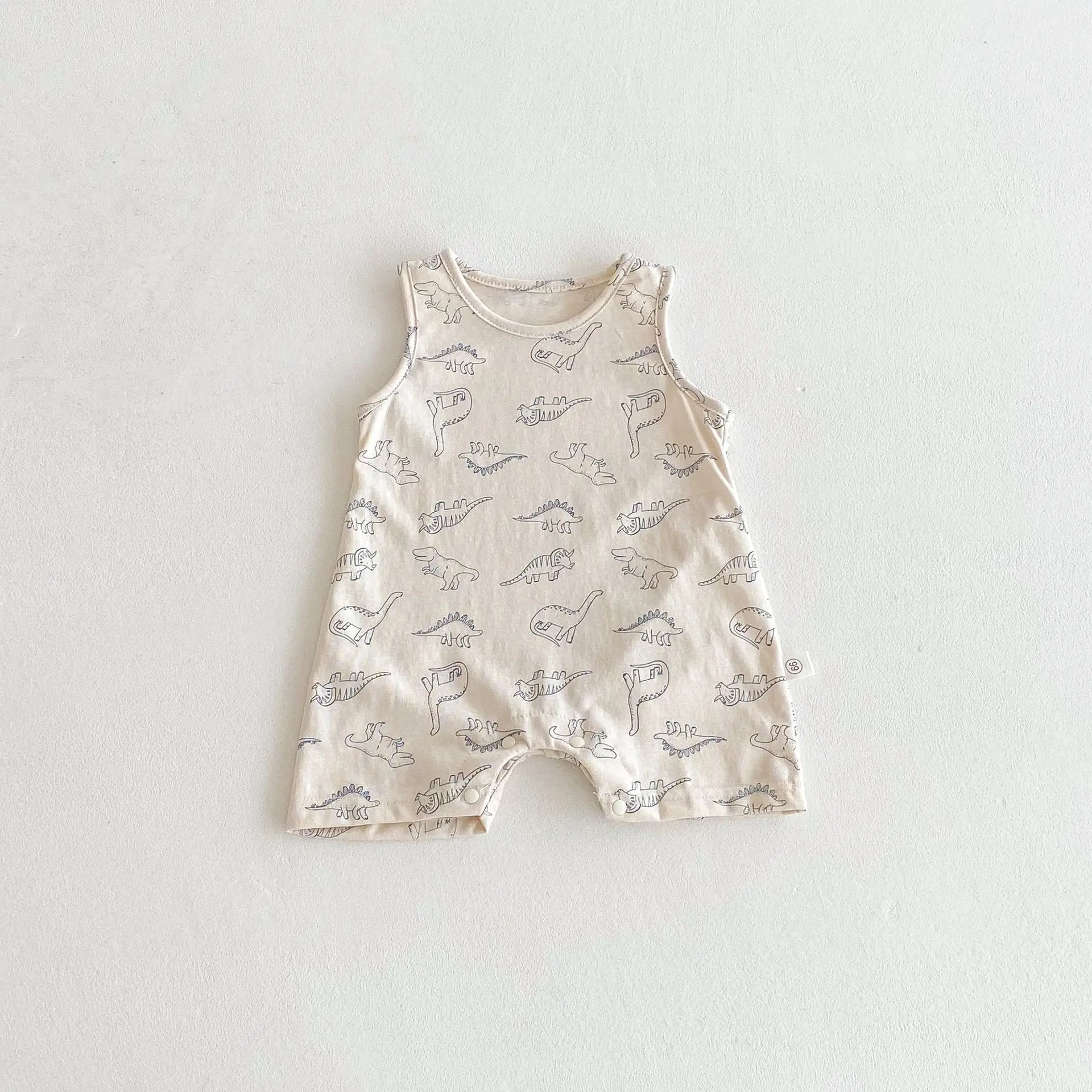 Children's Casual Sleeveless 100% Cotton Breathable Neck Jumpsuit Boys Girls Baby Rompers