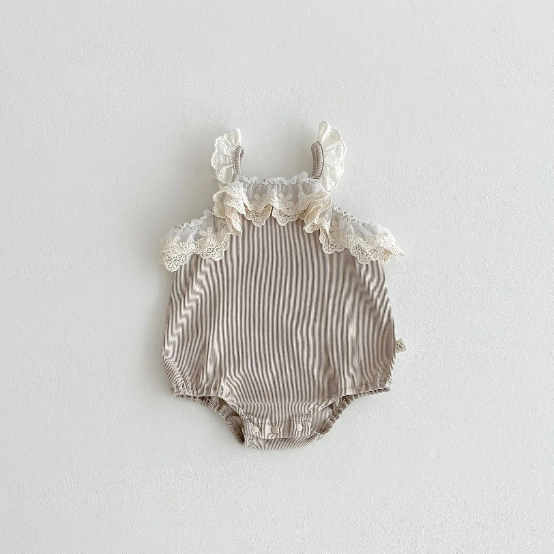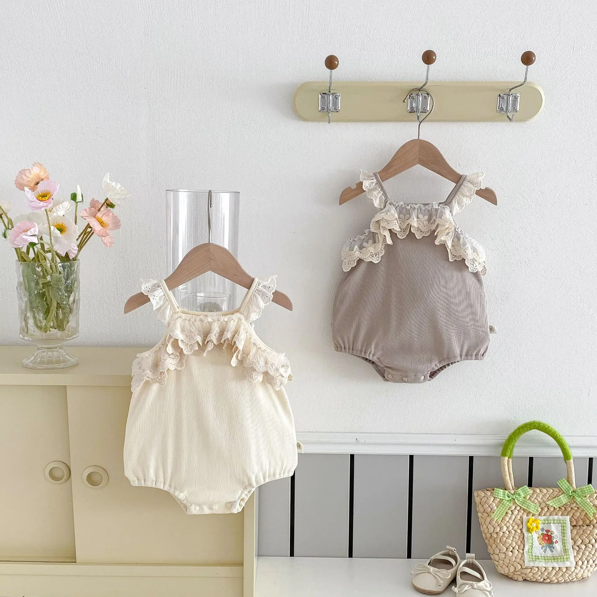Summer Baby Lace Trim Strap Romper Ins Style Fashionable Bodysuit Baby Girl Rompers