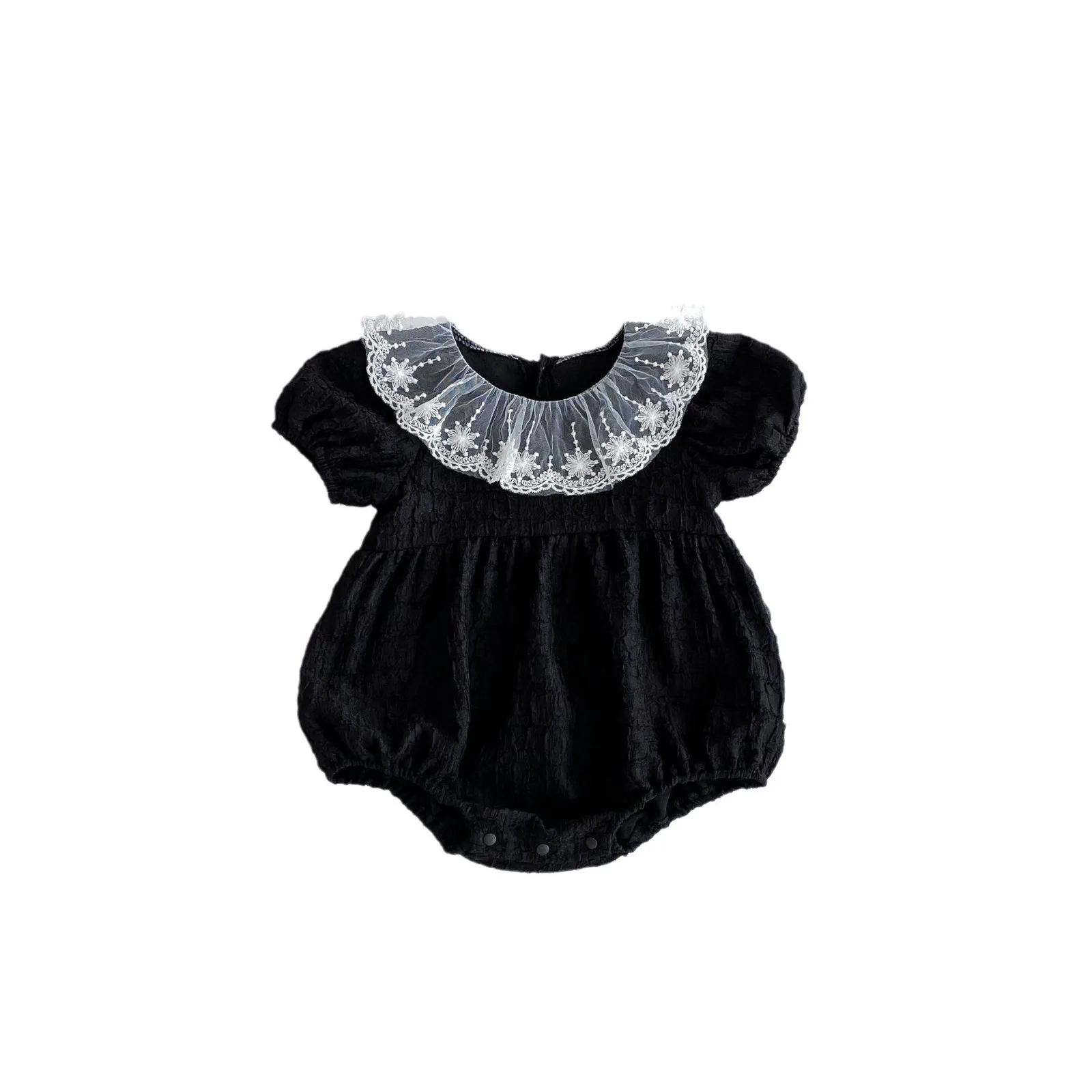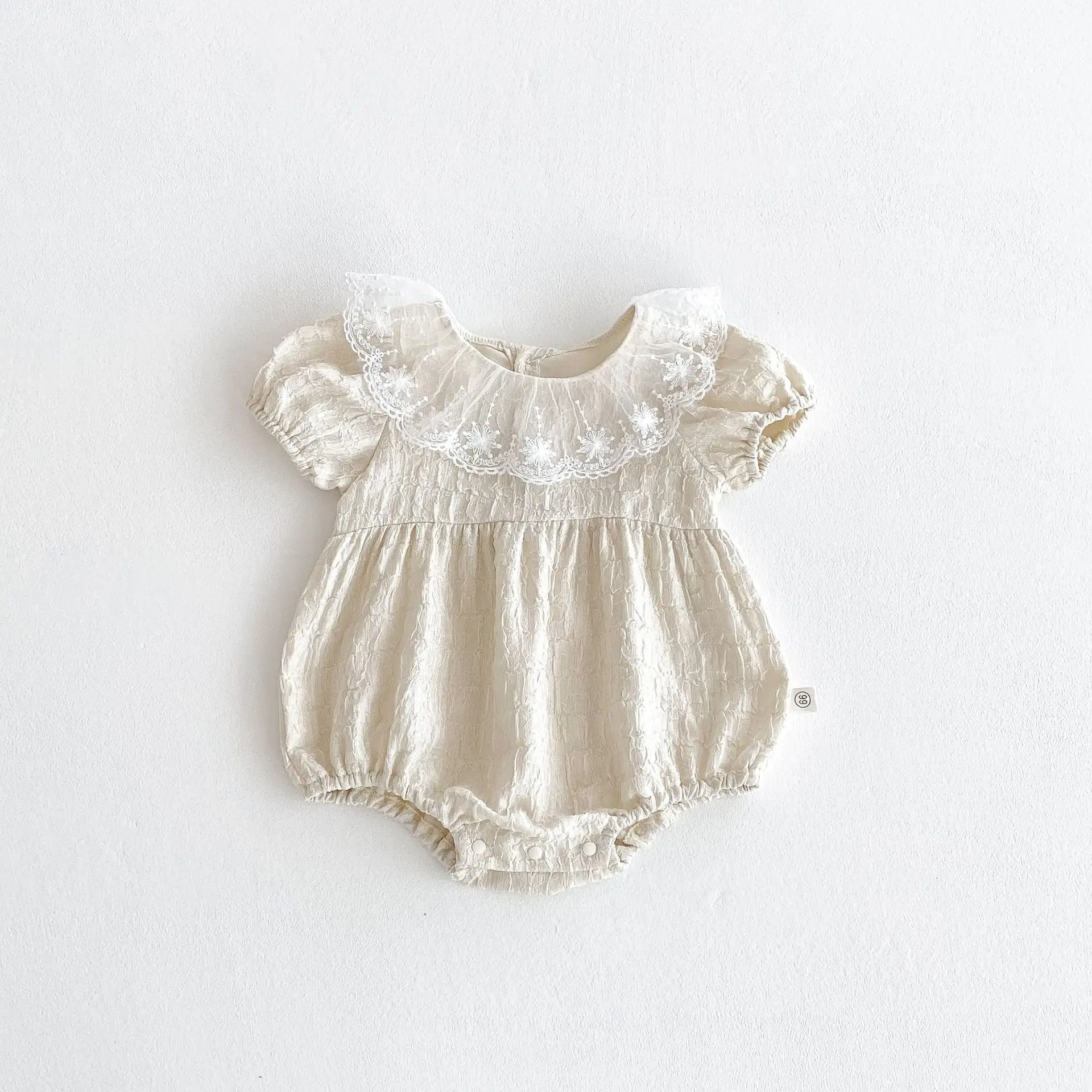 Baby Girl Summer ODM Customizable Cute Bodysuit Lace Trim Short Sleeve 100% Cotton Casual Romper