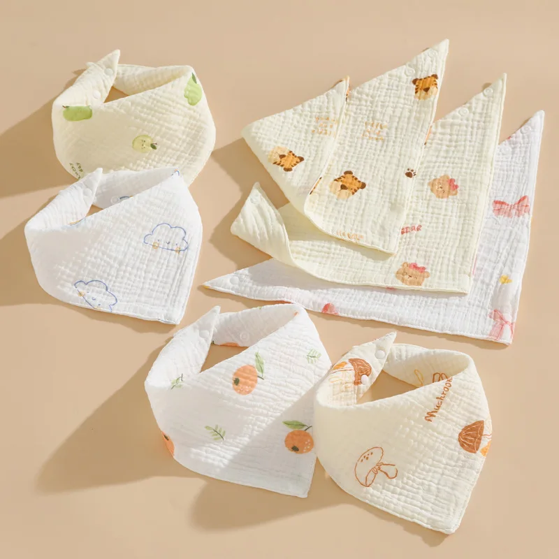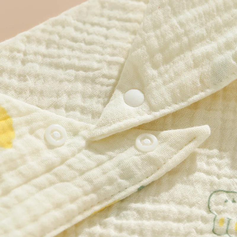 Muslin 4-Layer Thin Triangular Solid Eco-friendly Pure Cotton Gauze Button Baby Bibs