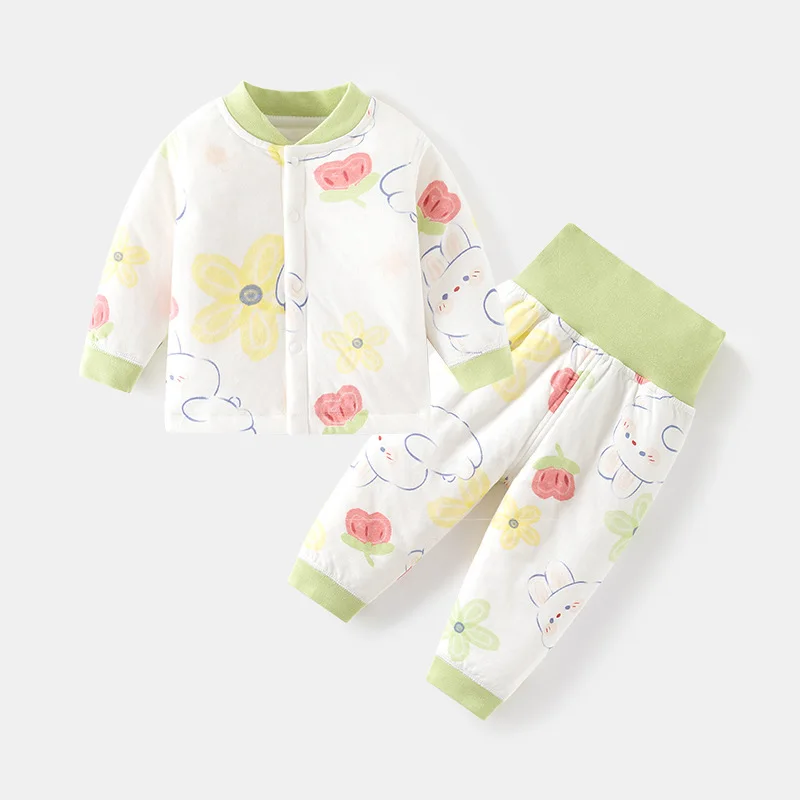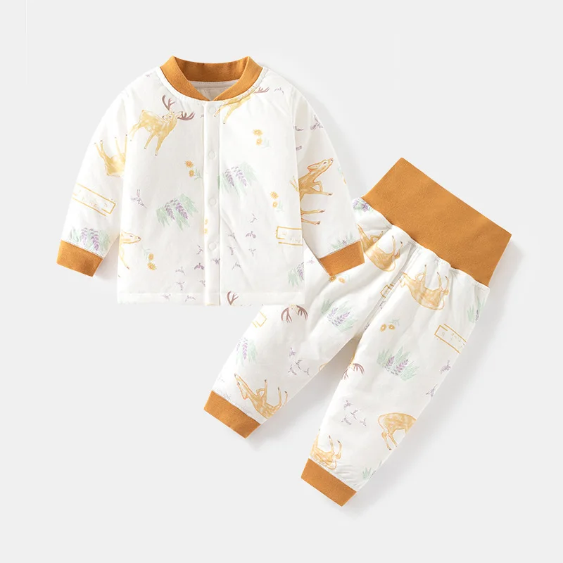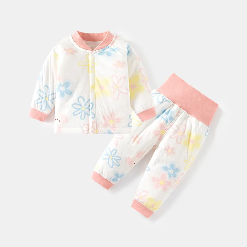 Baby Clothing Sets Thermal Underwear Quilted Cotton High Waist Belly Protection Open Front Design Toddler Girls Clothing Sets