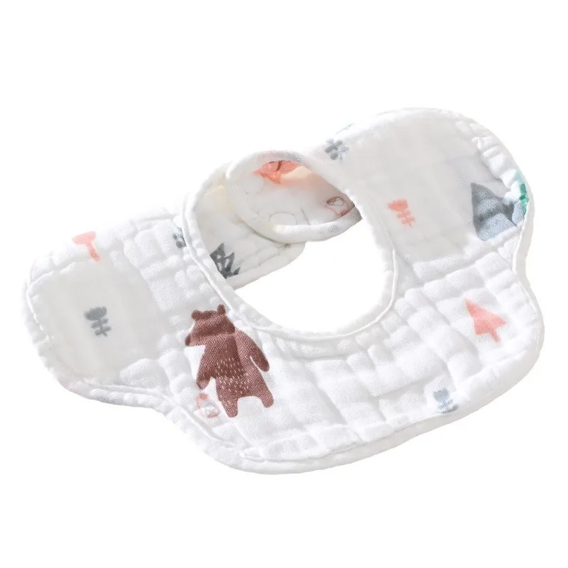 Muslin Baby Clothes Baby Item 6-Layer Pure Cotton Gauze Bellyband 360-Degree Round Rotating Button Baby Bibs