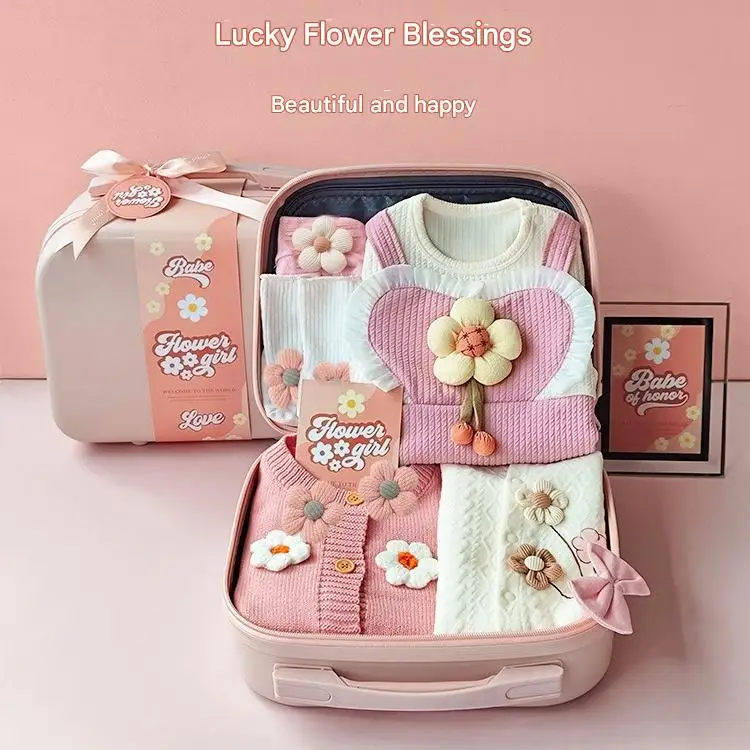 Baby Item Girl Gift Set Pink Floral Princess Spring Autumn Winter Series Cute Floral New Born Baby Gift Set