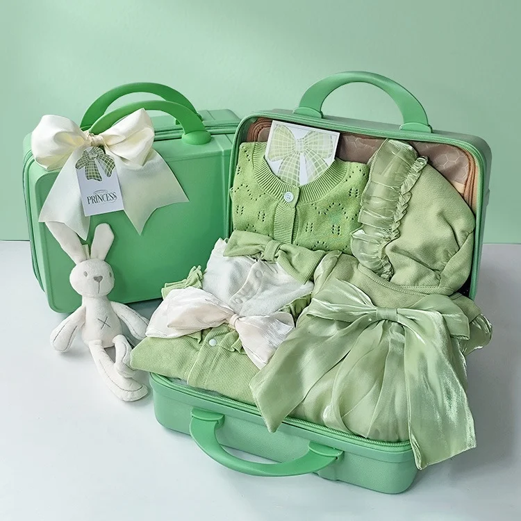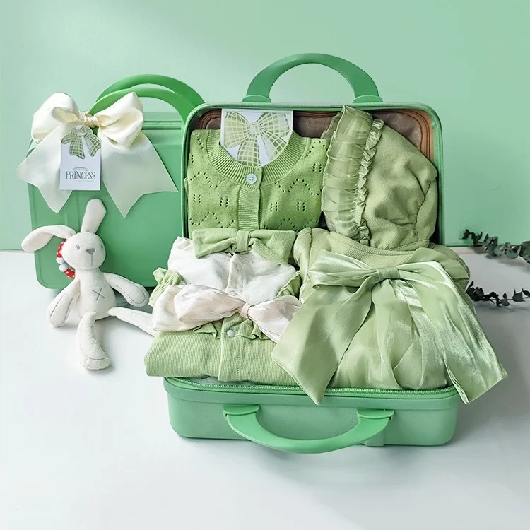 Baby Item Green Casual Baby Girl Clothing Set Princess Gift Button Closure New Born Baby Gift Set