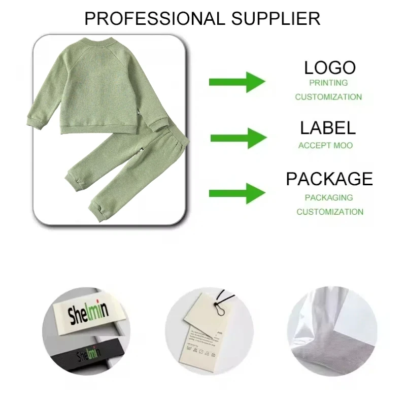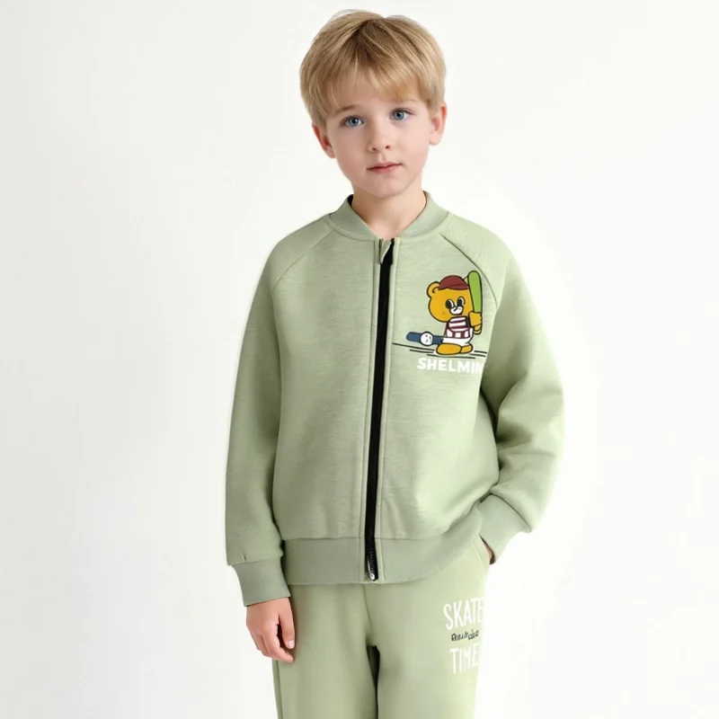 Wholesale 100% Cotton Kids Clothing Set Casual Long Sleeved Full Zipper Suit for Boys Natural Plant Dye