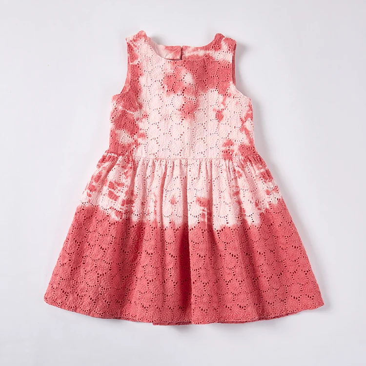 Wholesale ODM Solid Kids Clothes Plant Dye Natural Dye Sleeveless Lace Hollow Back Dress for Girls