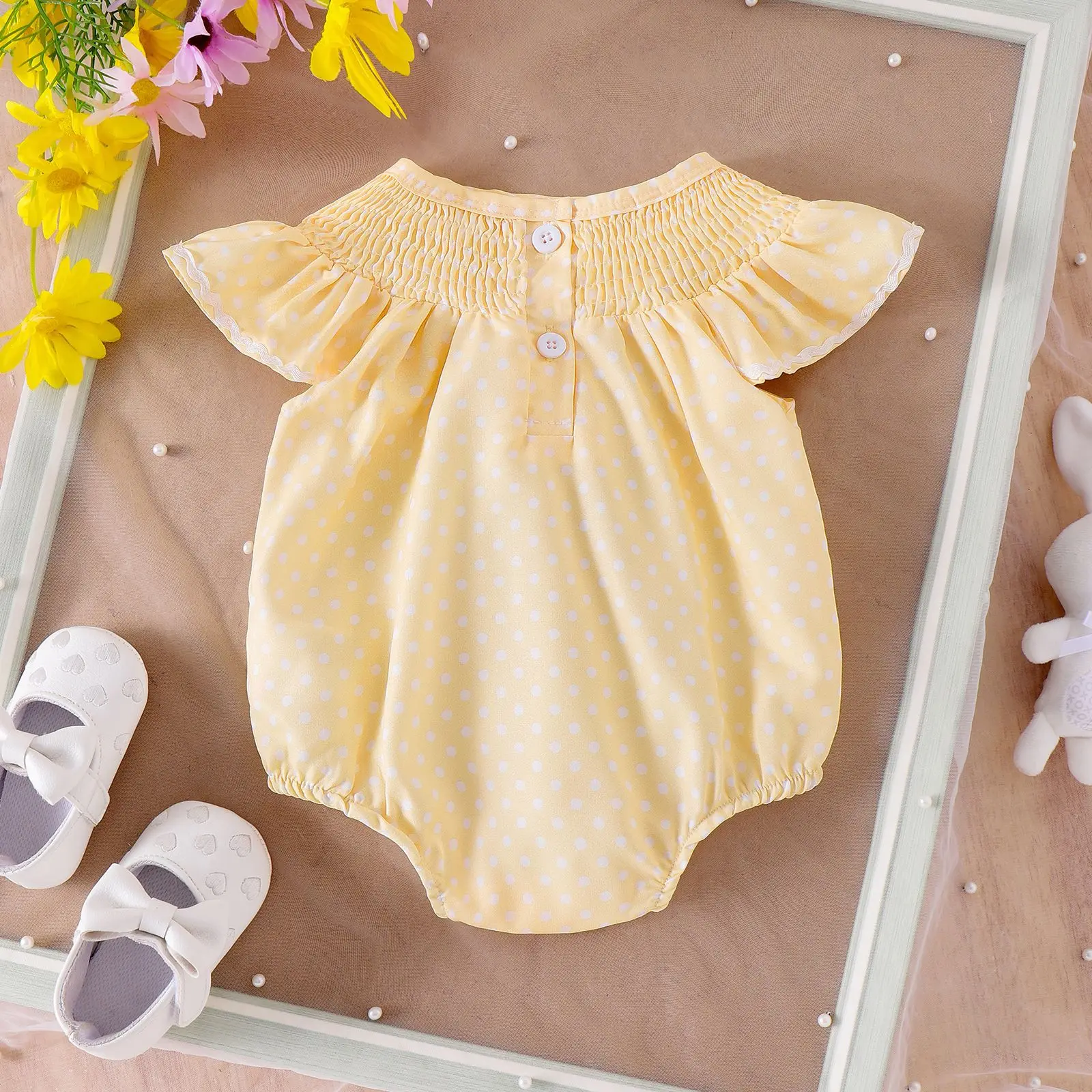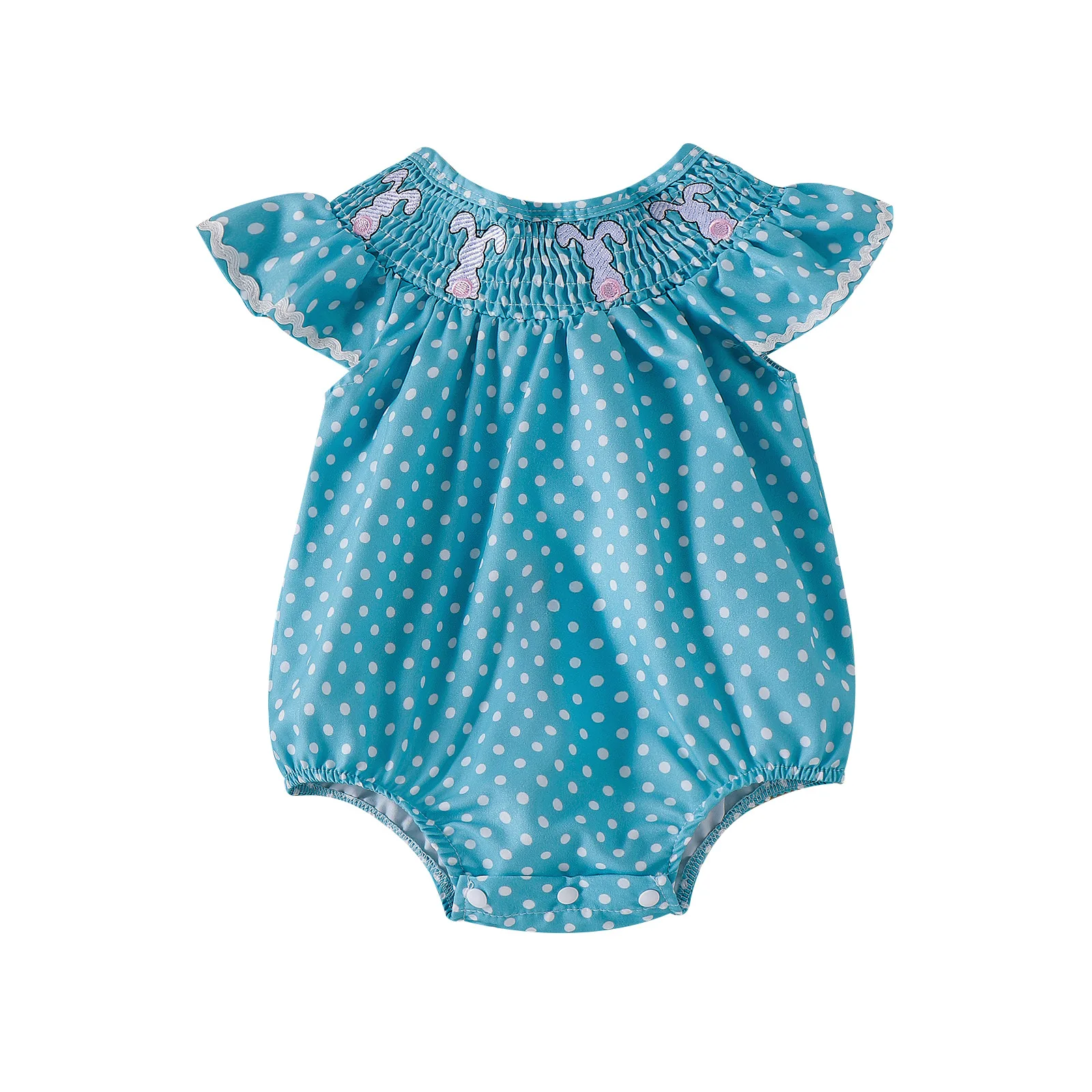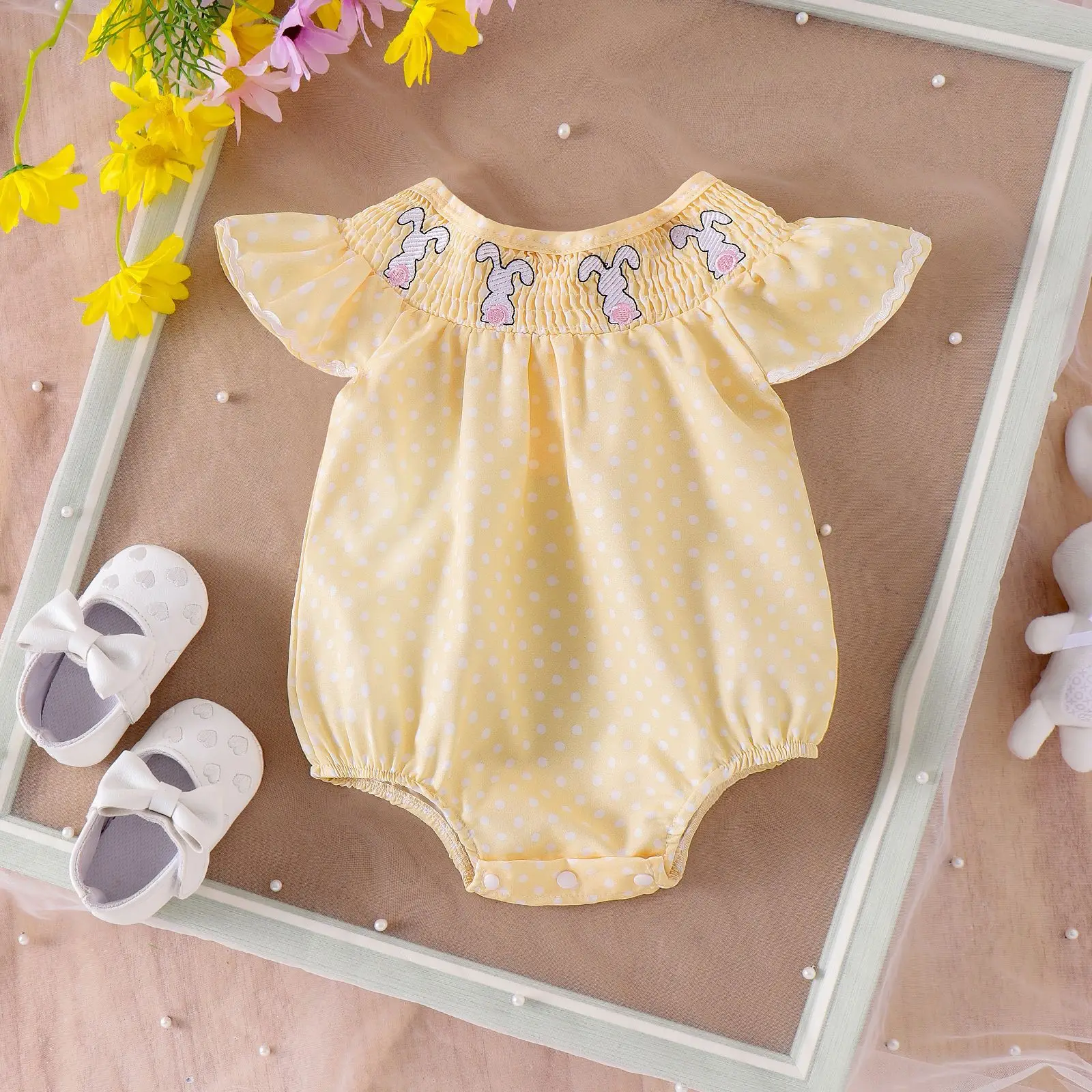 Custom Summer Knitted Baby Clothes ODM Design Polka Dot Princess 100% Cotton Cute Bunny Embroidered Short Sleeve Baby Girl