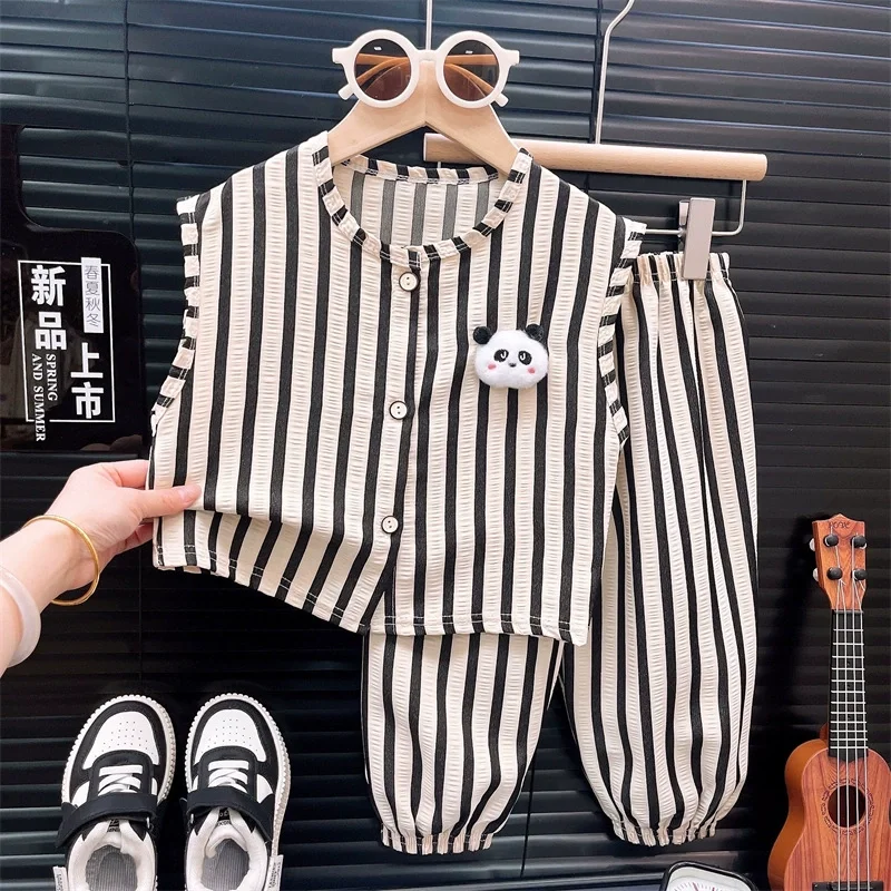 Children's summer loose vest and long pants striped two-piece set