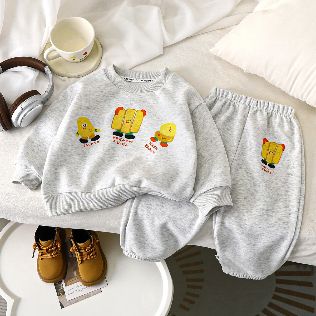 A new set of two-piece children's hoodie and sweatpants with shoulder sleeves casual for both boys and girls