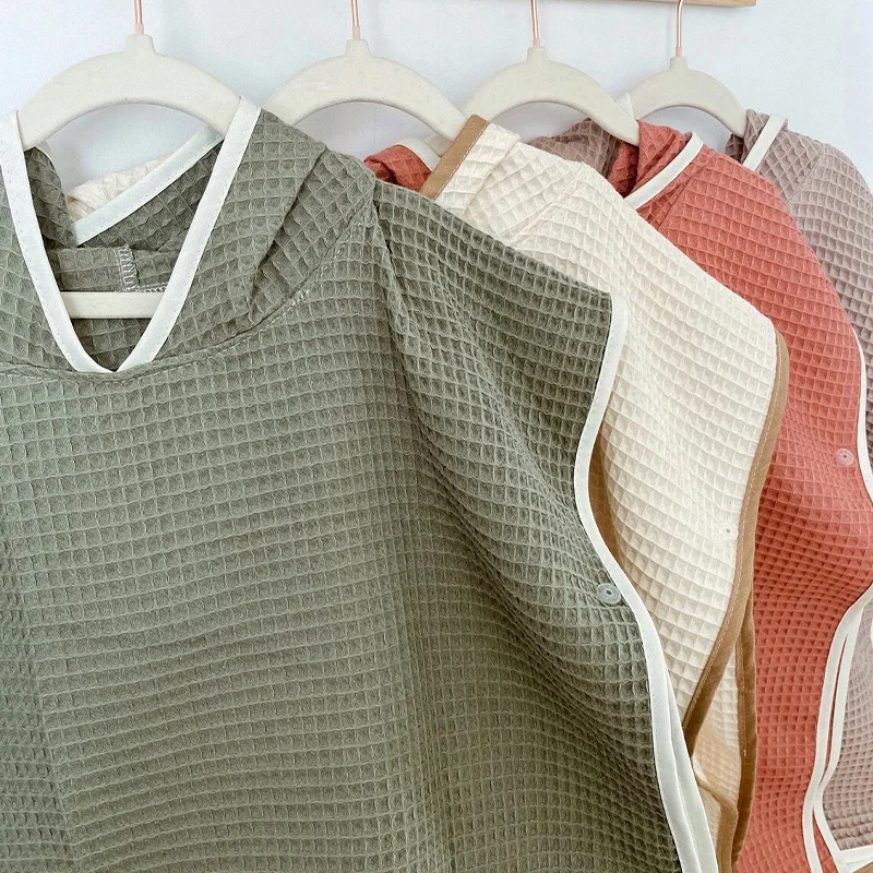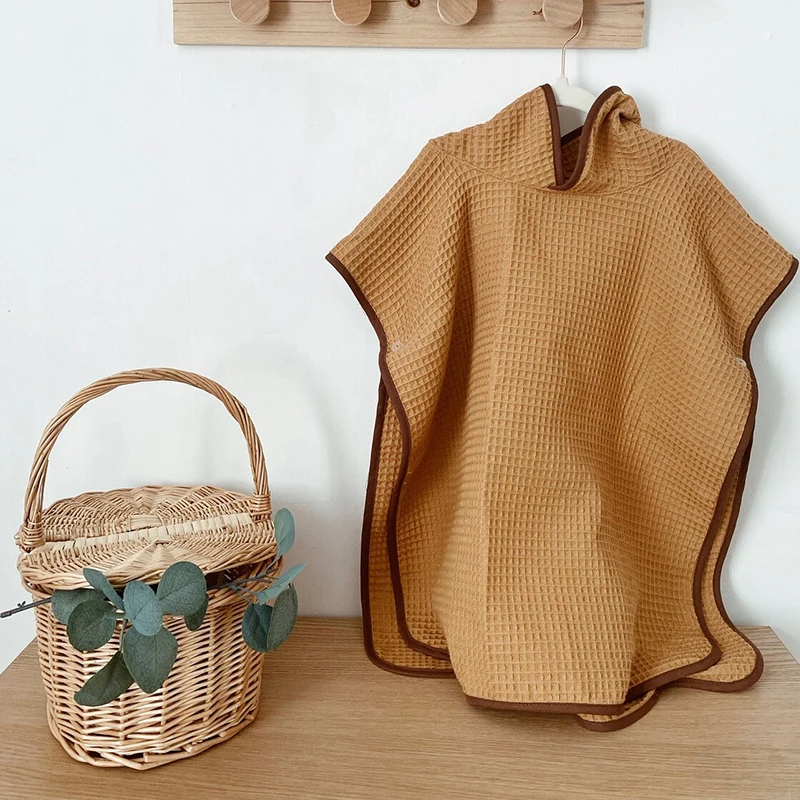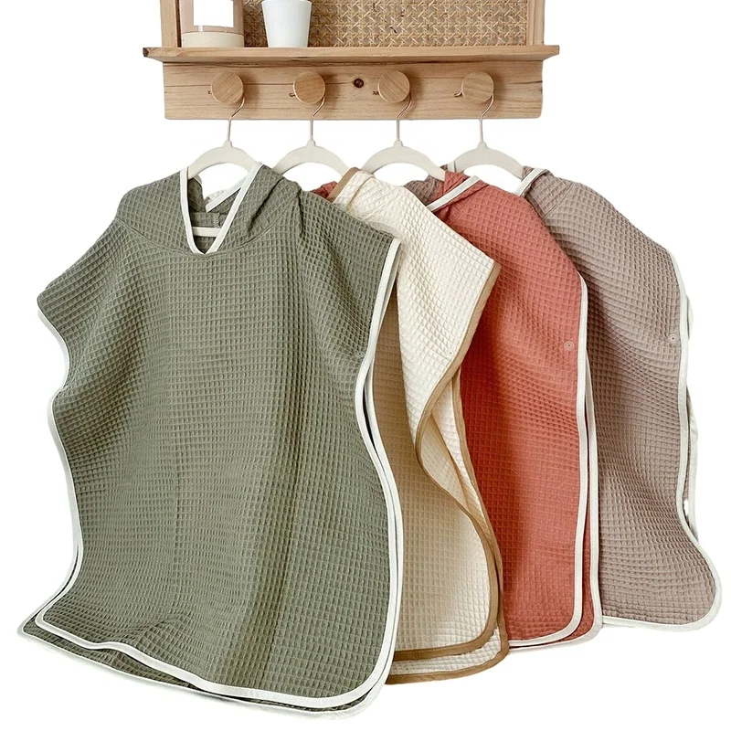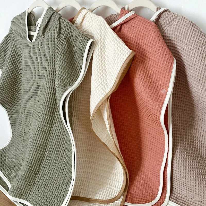 Organic Cotton Waffle Children Hooded Bath Robe Custom Knitted Baby Bath Towel Poncho Towel for Kids Bath Towels Child Robe