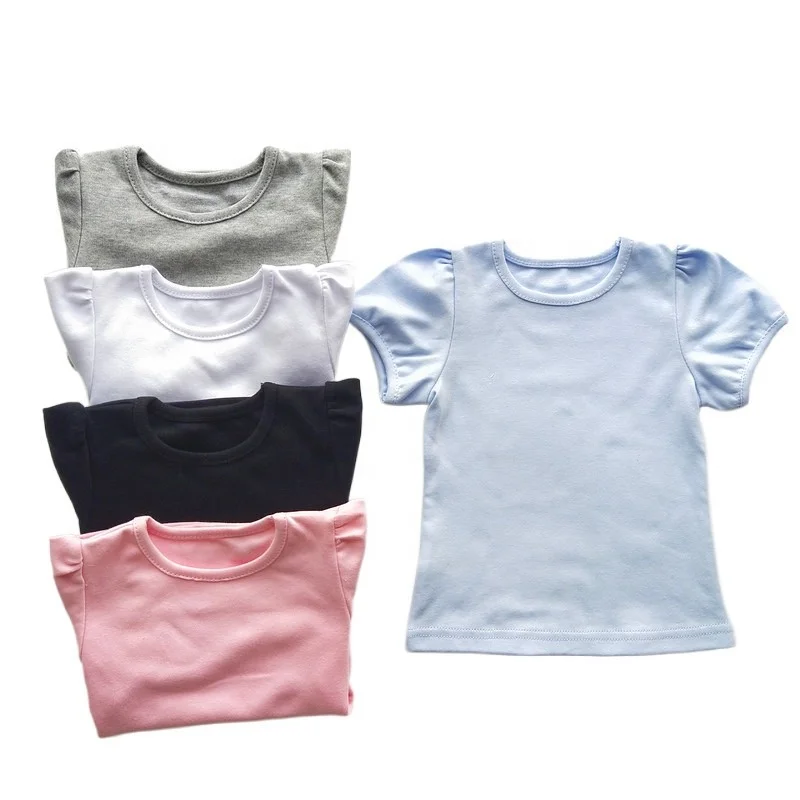 Custom Girls Blank t Shirts Kids Baby Girl Clothes Summer Top Tees Toddler Tshirts Puff Sleeves White t Shirts 100% Cotton