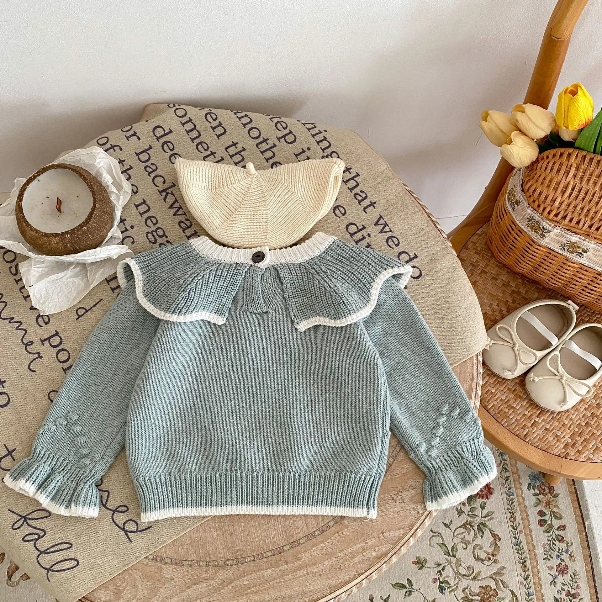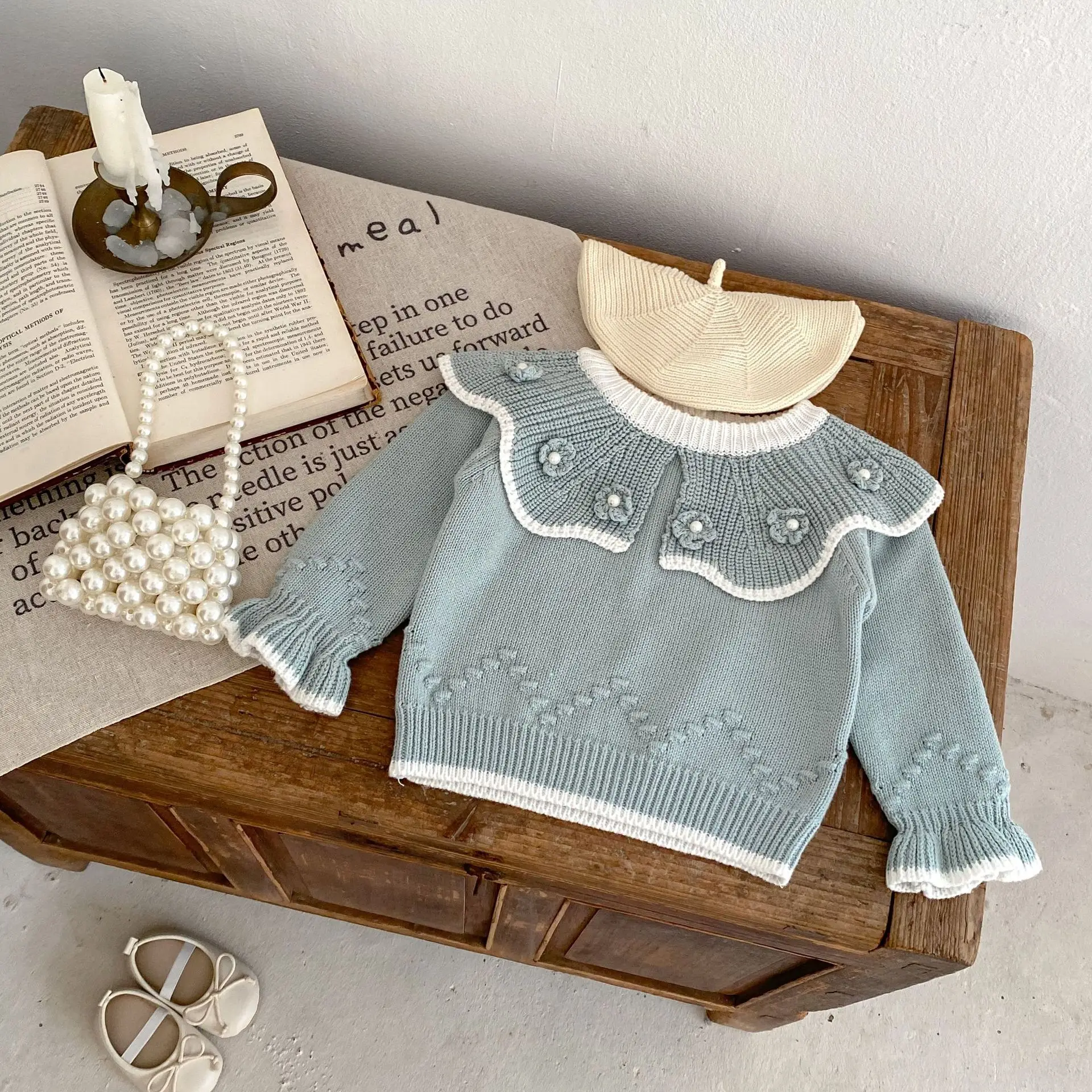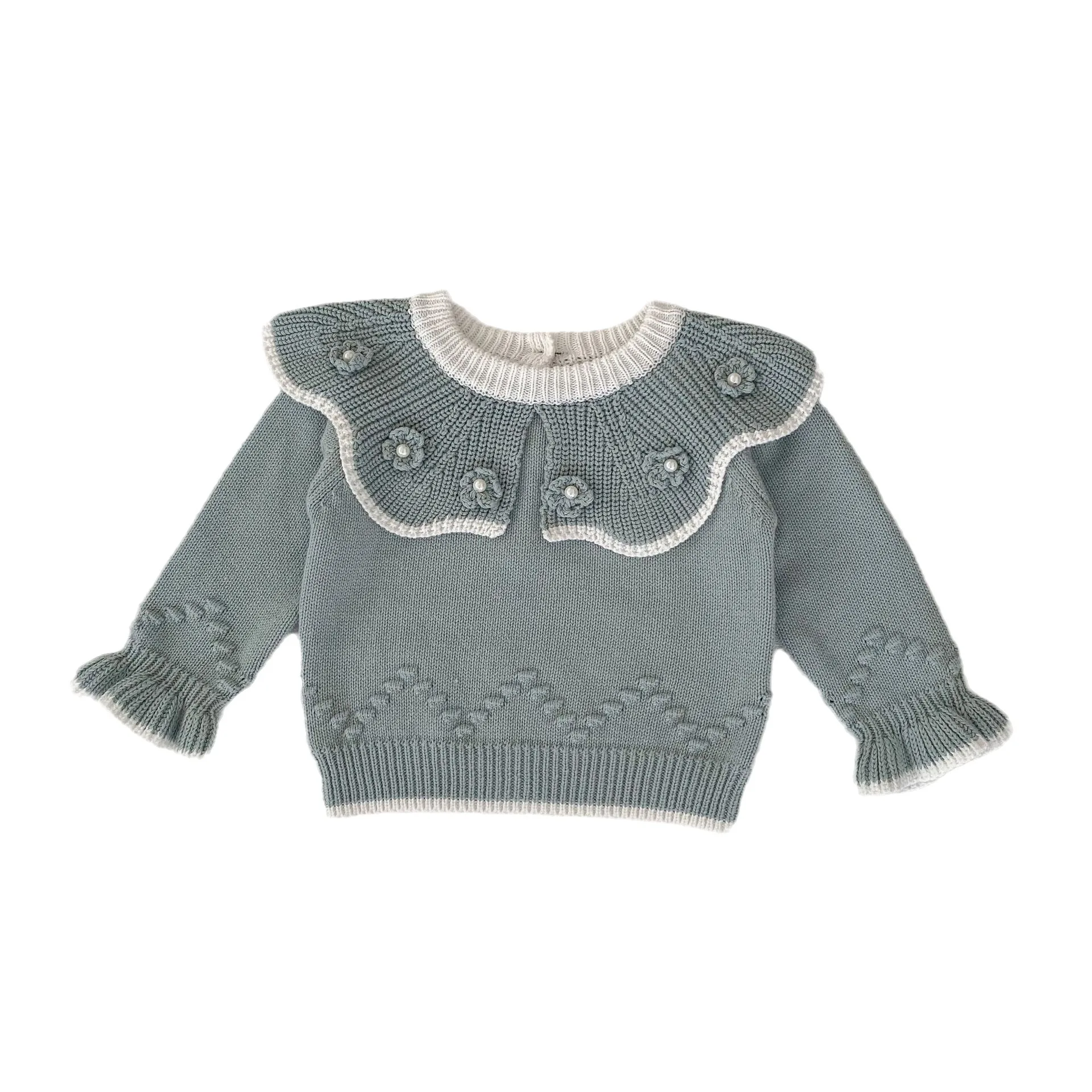 Custom Autumn Newborn Baby Knit Sweater Top Infant Knitted Long Sleeve Sweater Pullover Kids Girl Floral Clothes