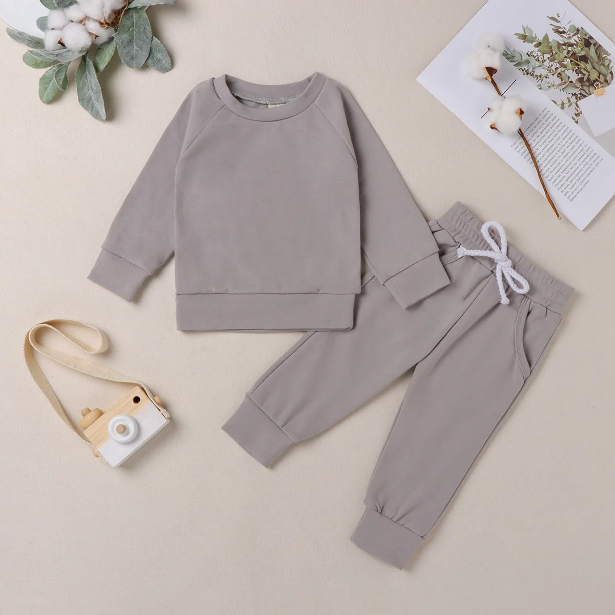 Boys' Fashionable Long Sleeve Knitted Baby Hoodies and Jogger Pants Set Pullover Closure for Spring and Fall Kids' Wear