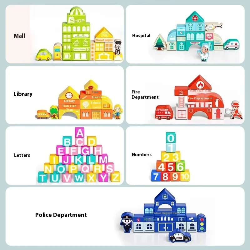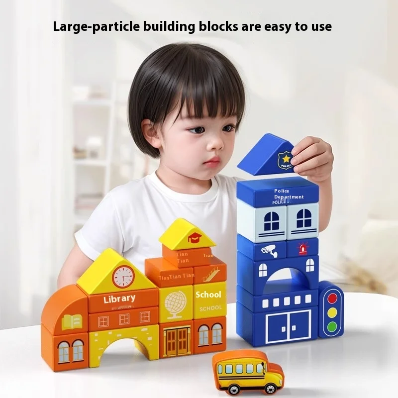 Montessori Inspired ABS Building Blocks for Children Aged 3-6 Assembled Stacked Music Puzzle Street View Toys for Kindergarten