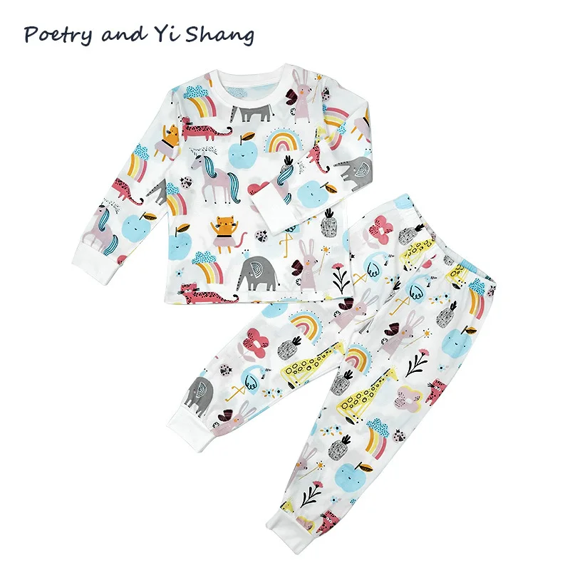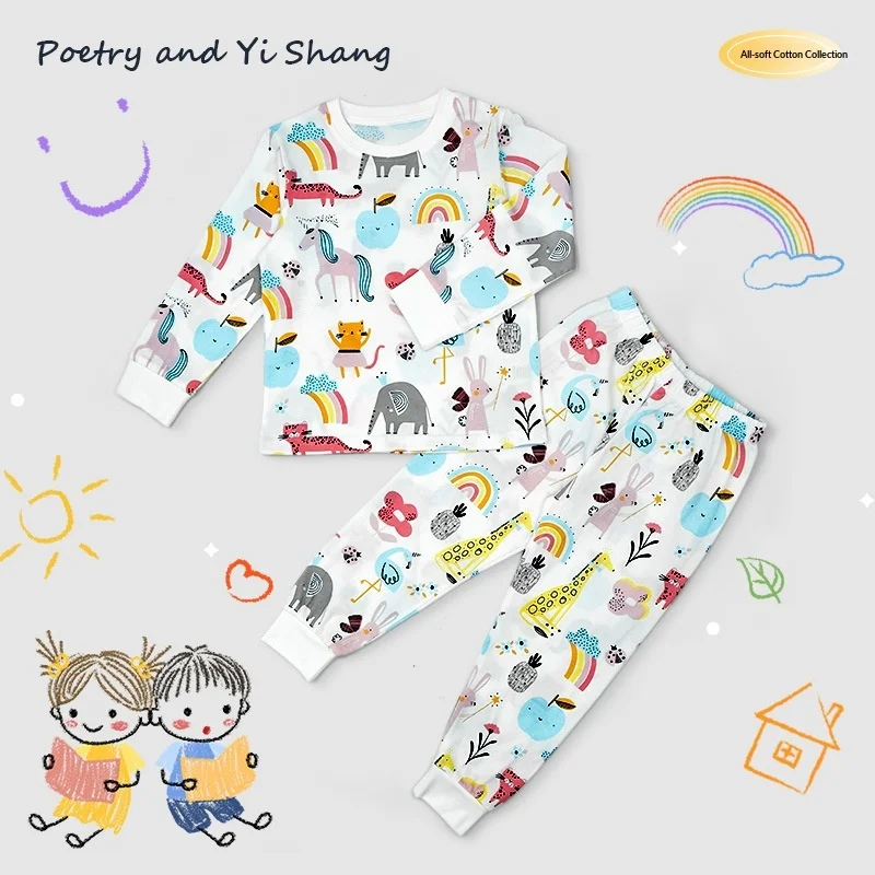 Children's Home Clothes Pajamas Printed Pure Cotton Cartoon Animal Cute Set Casual Loose Baby Pajamas K06001 Small Fresh Wind