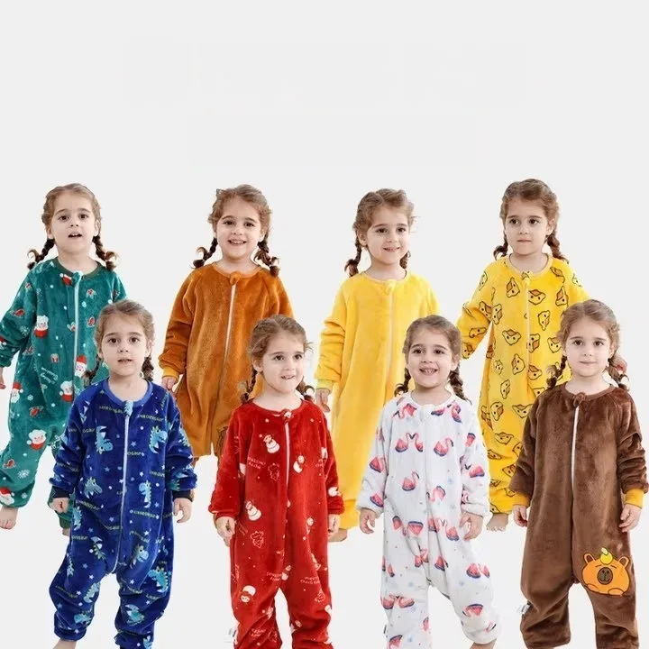New Flannel Sleeping Bag Baby Toddler Cartoon Summer Zipper Long Sleeve Cross Border Children Home Clothes