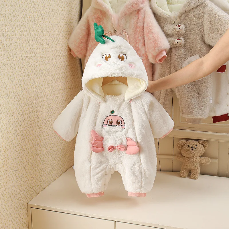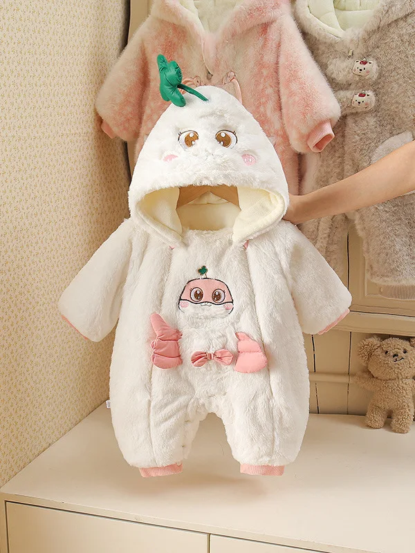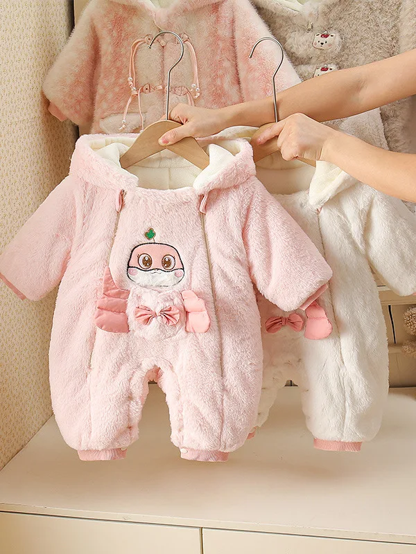 Baby's Winter All-in-one Cute Korean-style Single-breasted Cartoon Pattern Cotton Blend Fleece-lined Thickened Plush Climbing