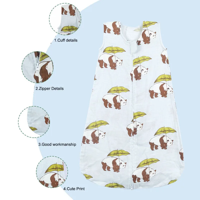 Bamboo Cotton 2 Layers Muslin Sleeveless Soft Newborn Baby Wrap Blankets Baby Sleeping Bag for 0-6m Infant