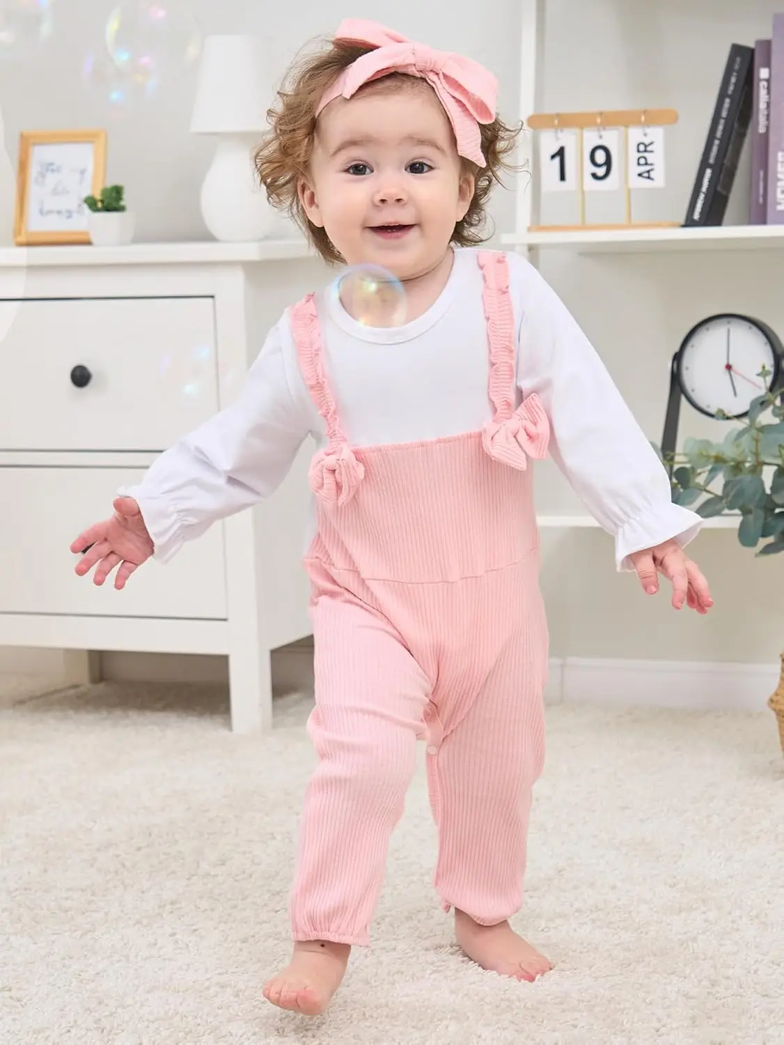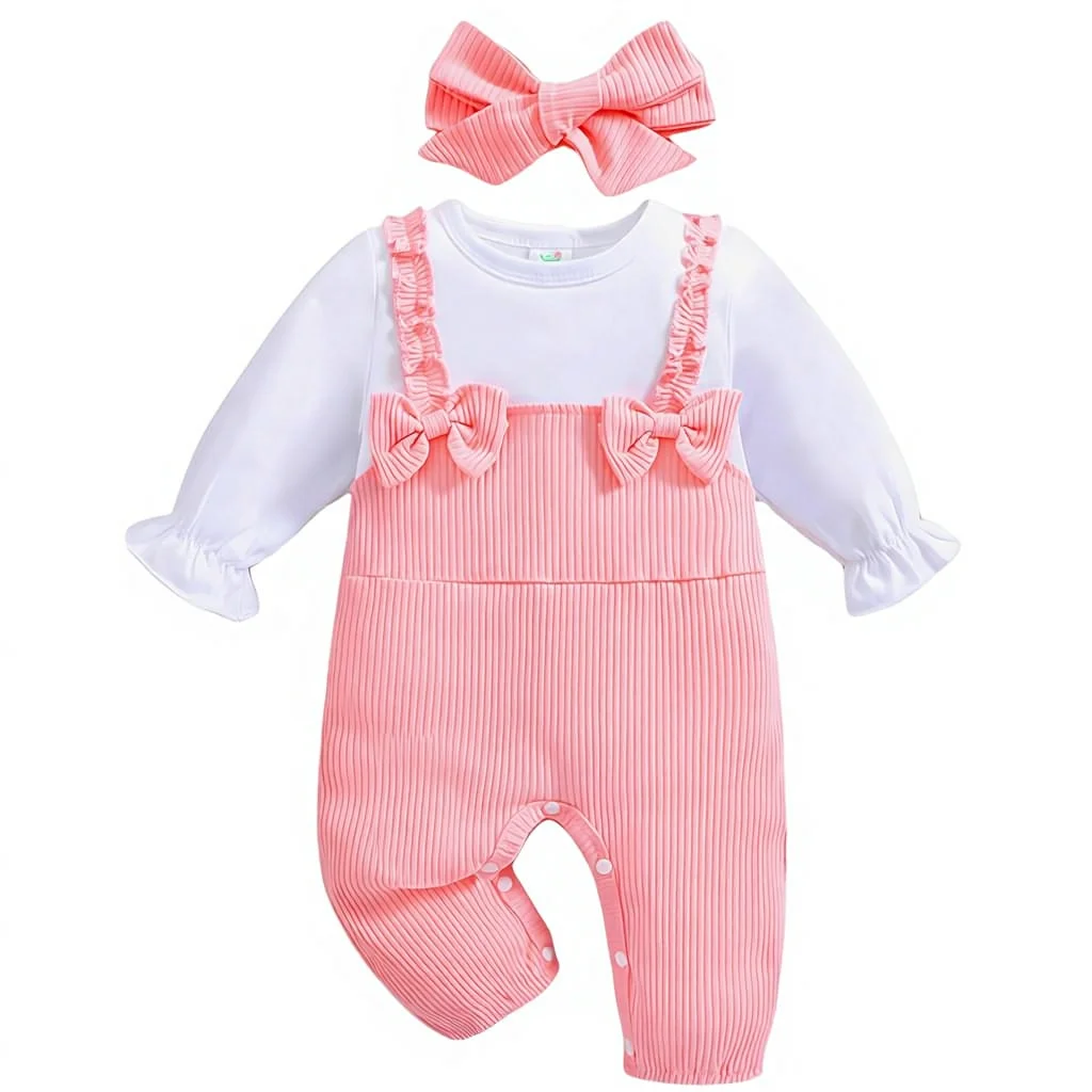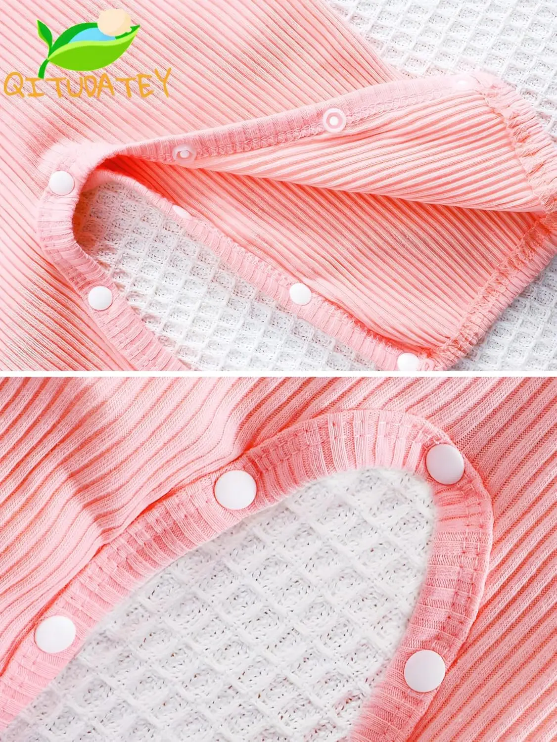 QITUDATEY Newborn Baby Girls Solid Long Sleeve Footless Romper Bodysuit One Piece Jumpsuit Set Birthday
