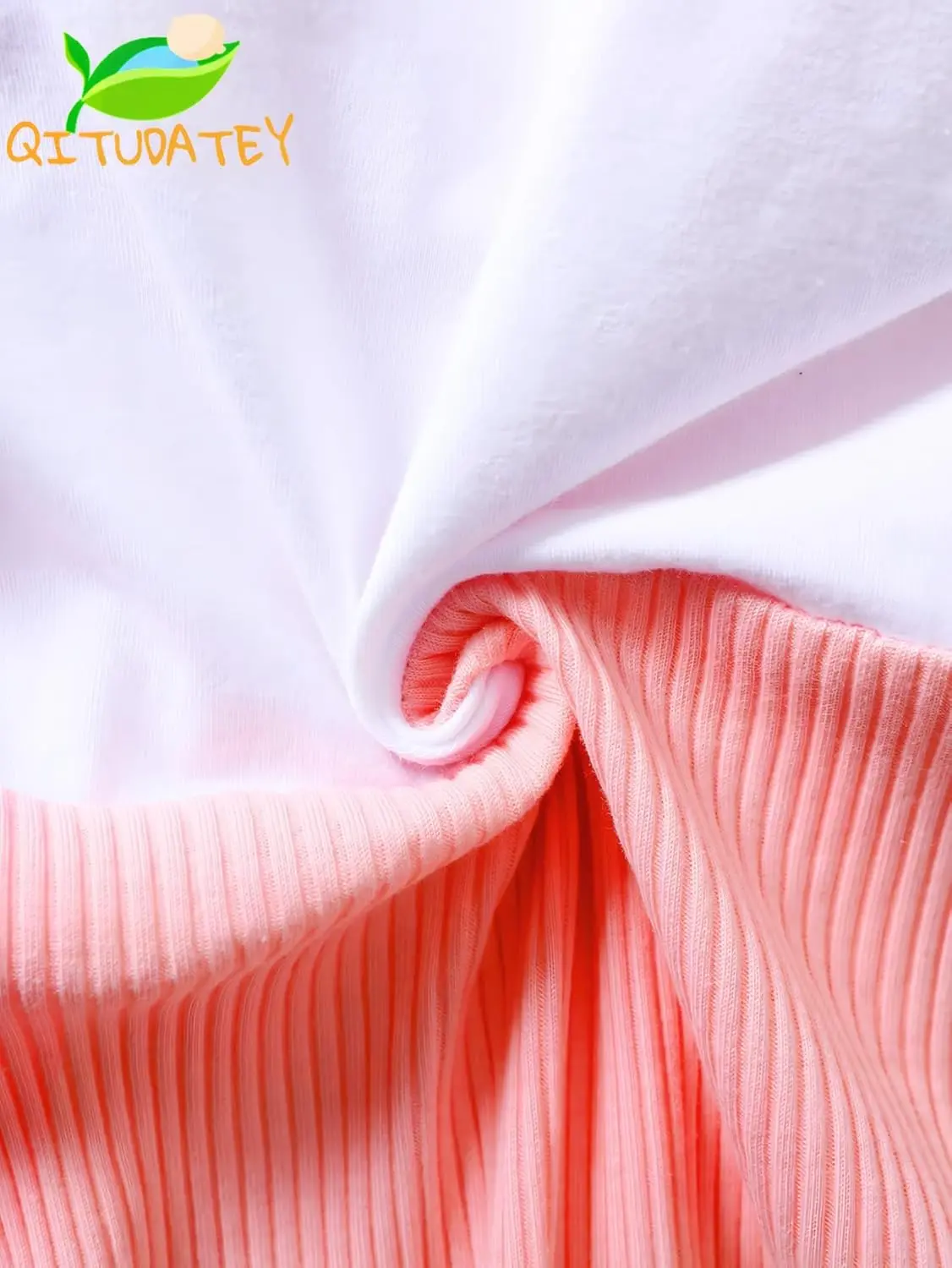 Girls Two Piece Outfit Customizable Cute T Shirt with 3D Bear Embroidery and Lace Trim Skirt Summer Apparel
