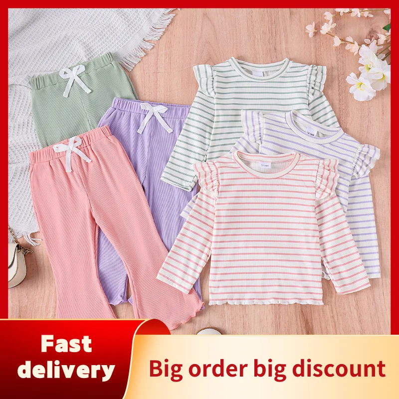 Children's Clothing Multicolor Striped Cotton Long Sleeve Trousers Europe and America Style Two