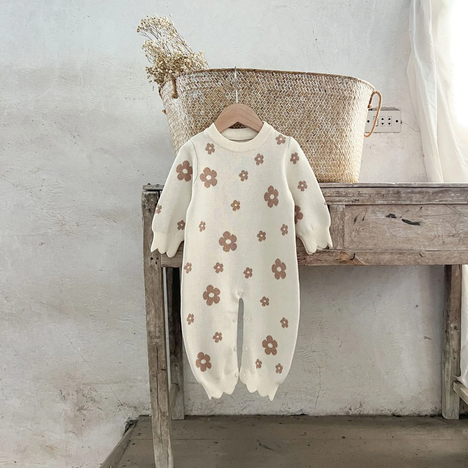 Ins Korean Style Baby Girl's Pure Cotton Autumn 2026 Pullover Climbing Wear Easy-to-Wear Jumpsuit Sweater
