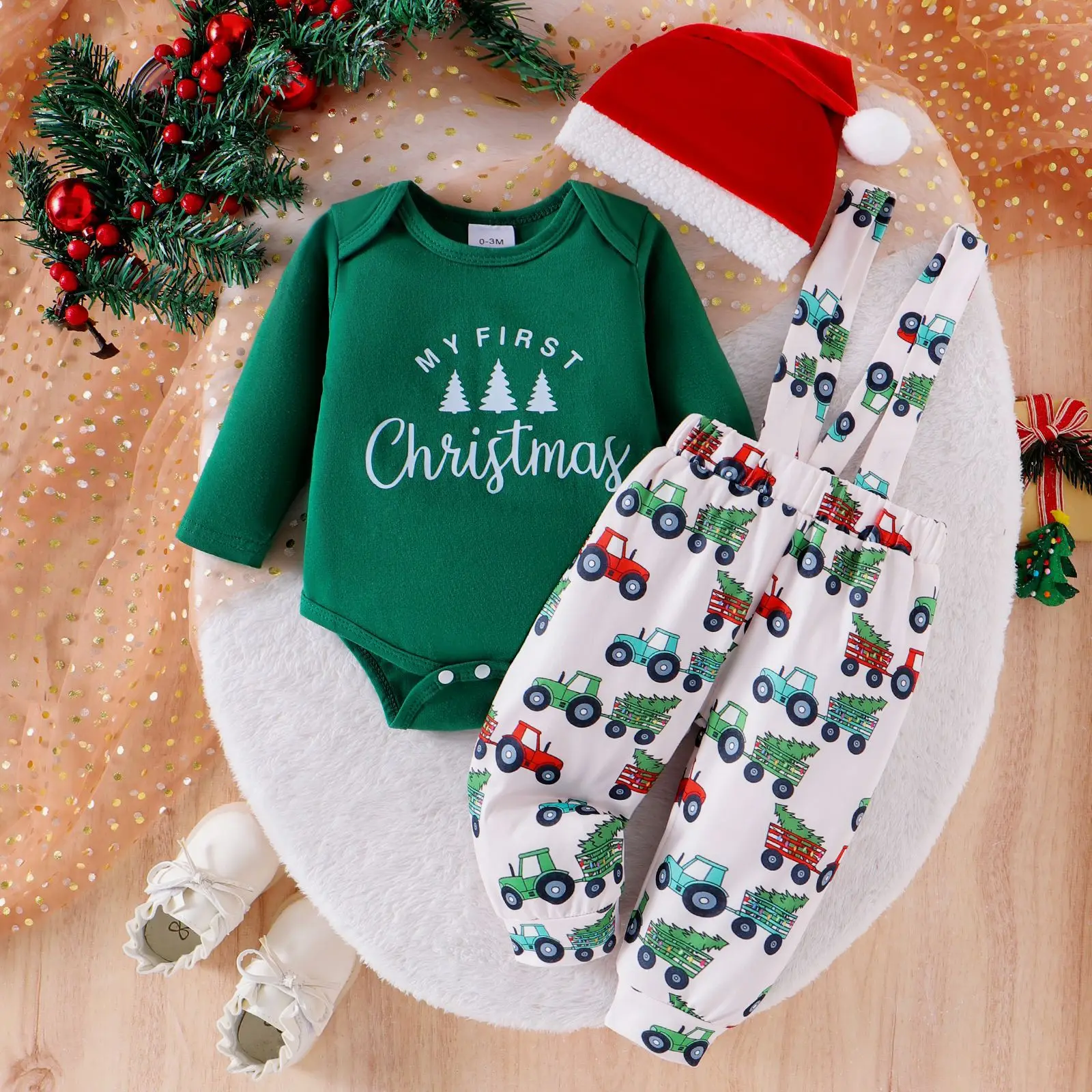 Foreign Trade Autumn New Baby Cotton Fashion Christmas Tree Printing Long Sleeve European-American Style Pants Hat