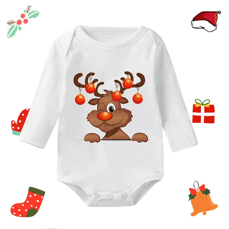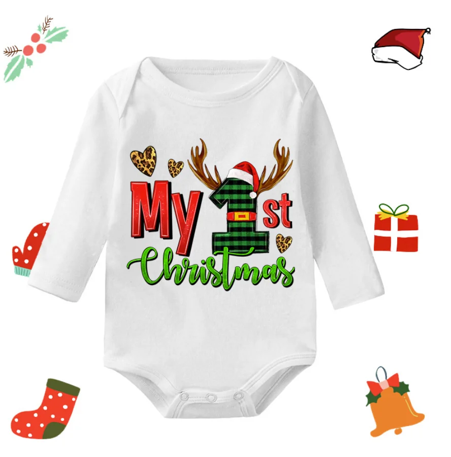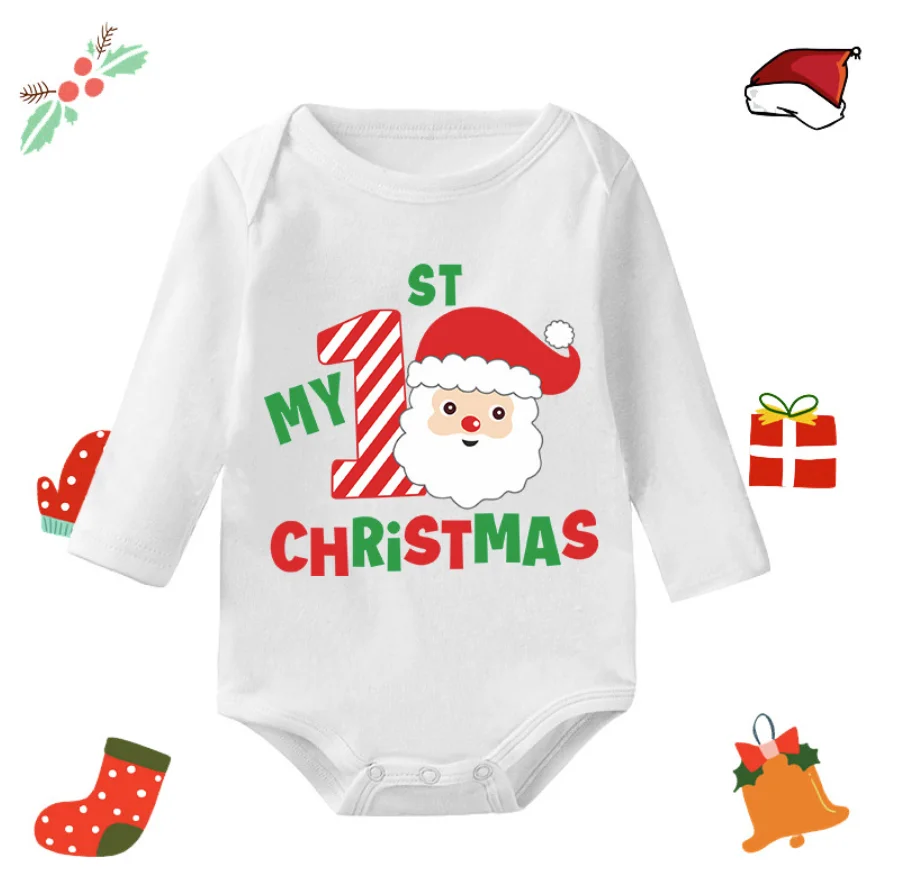 Factory Direct Sale Winter Casual 100% Cotton Merry Christmas My 1St Baby Long-Sleeve Romper
