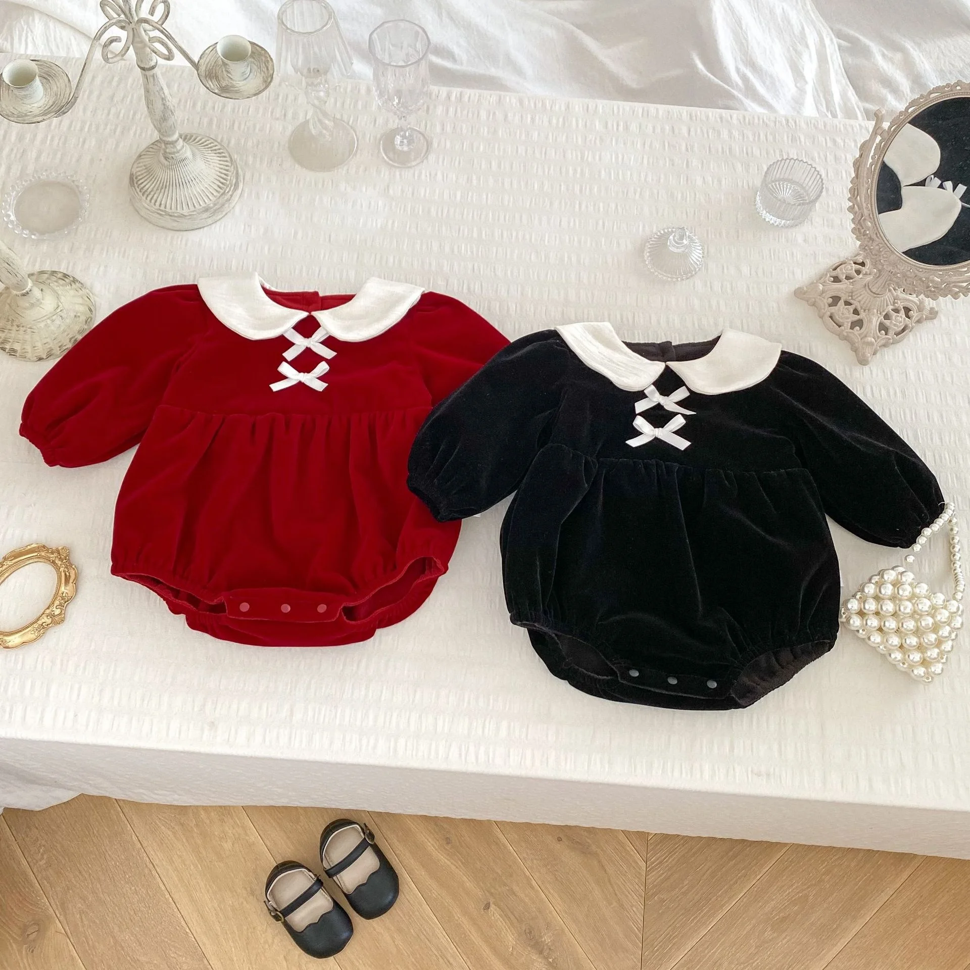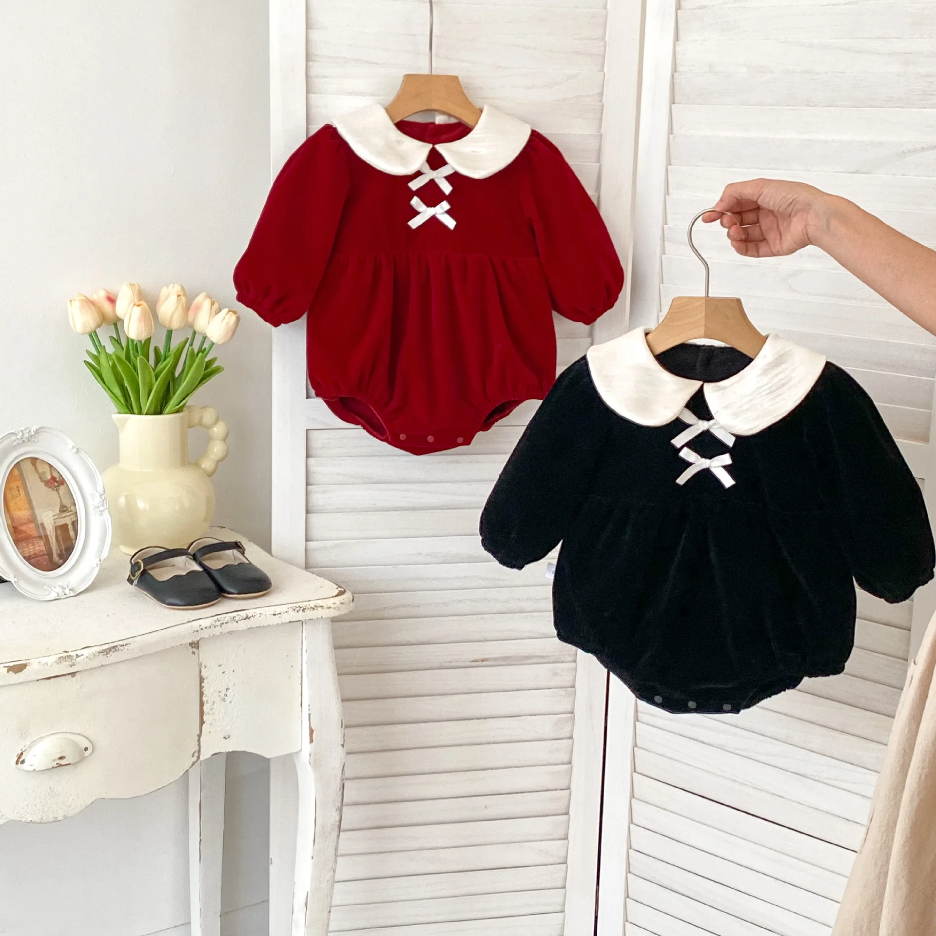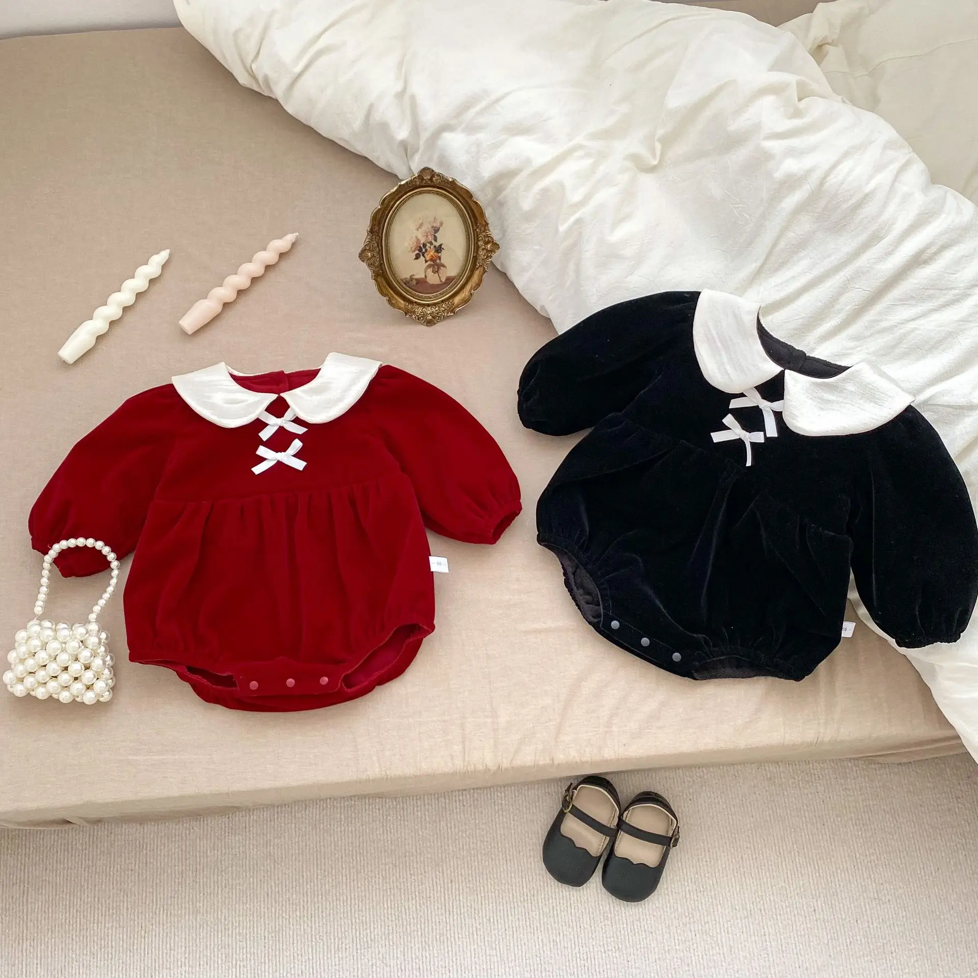 Winter New Arrival Casual Style Baby Girl's All-Match Long Sleeve Harper Bow Doll One-Year-Old New Year One-Suit Stylish Collar