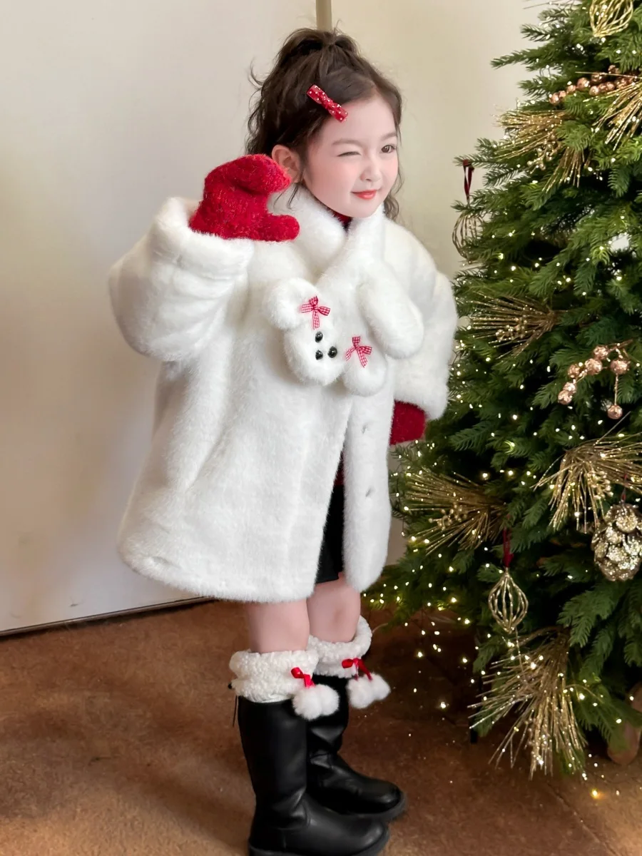 Children's Girls' Environmentally Friendly Imitation Fur One-piece Coat Winter Warm Garment Dyed Printed