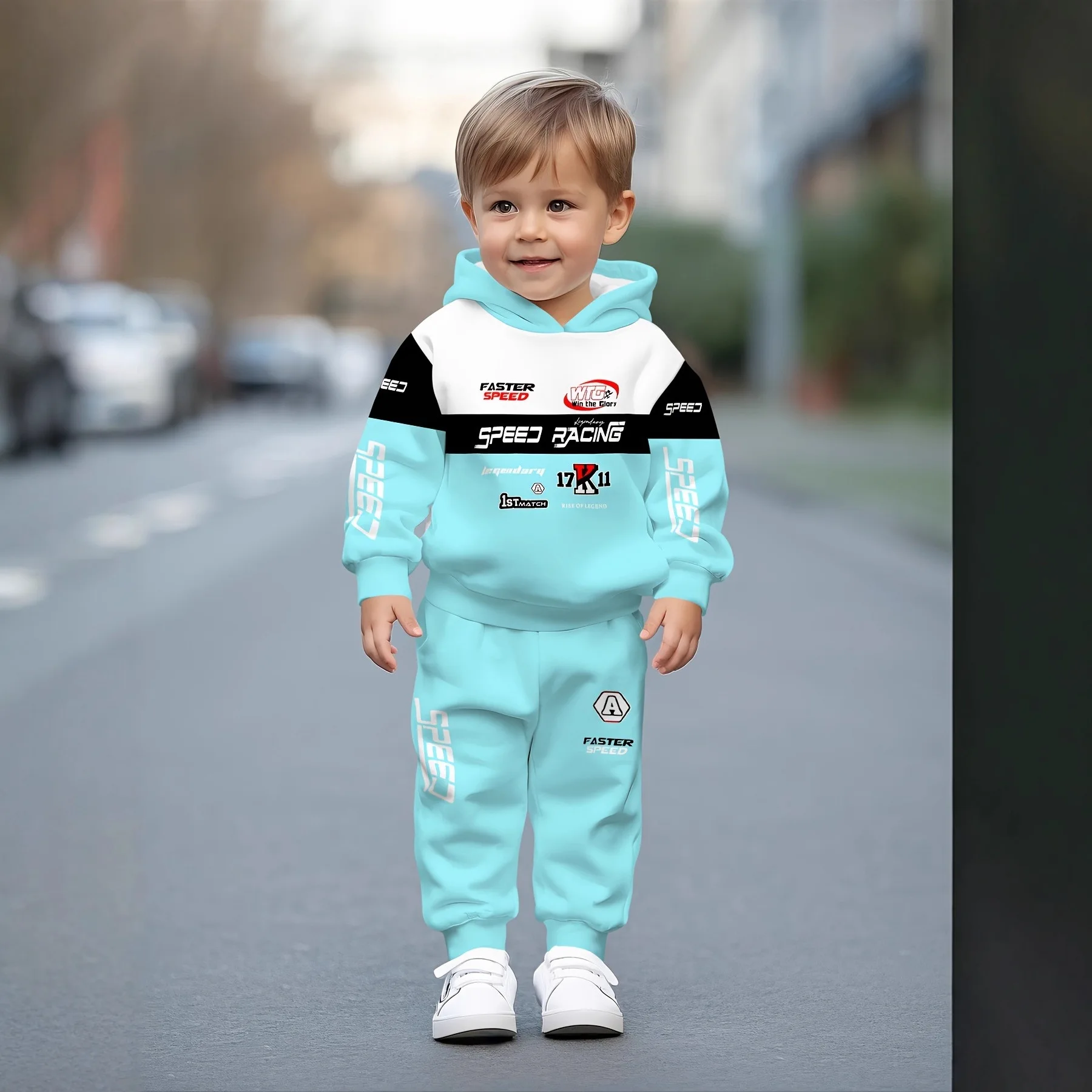 Children's Clothing Hooded Boys Racing Plush Bear 3D Printed Comfortable Set