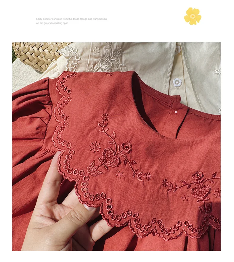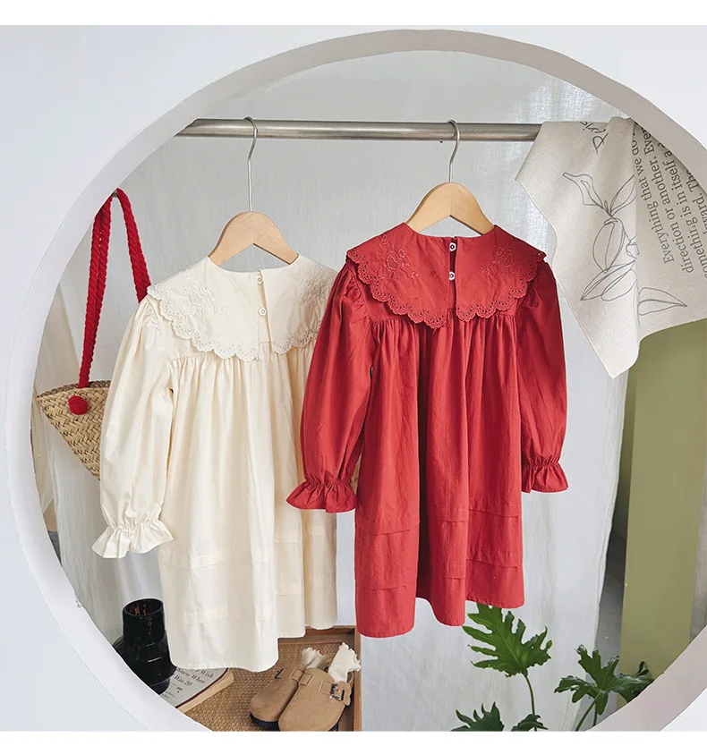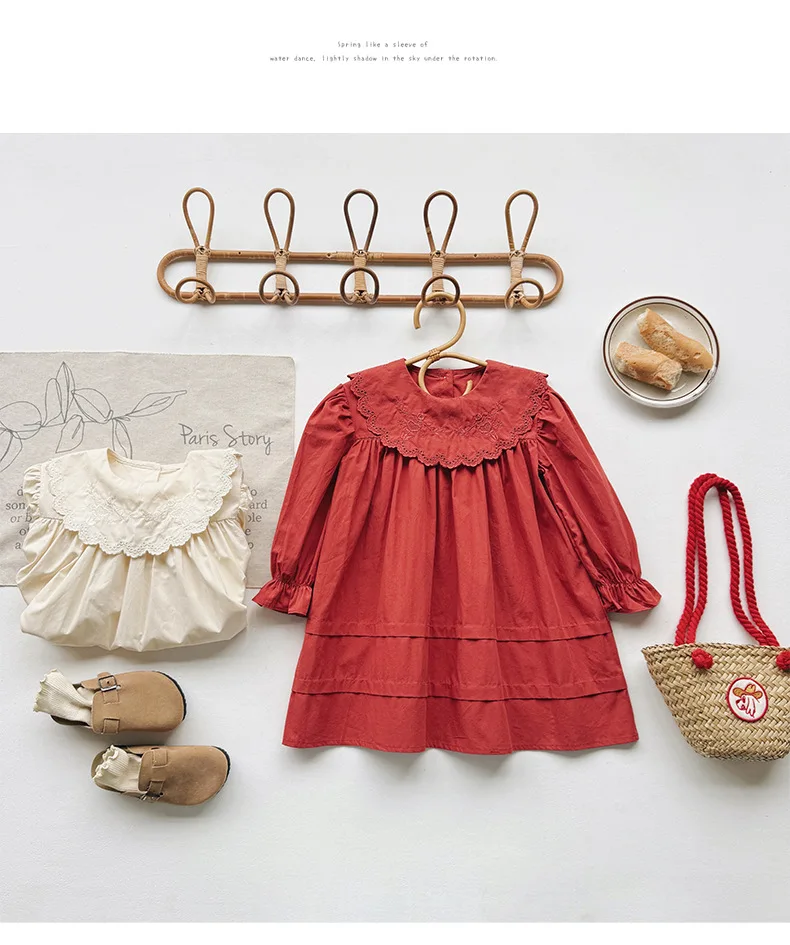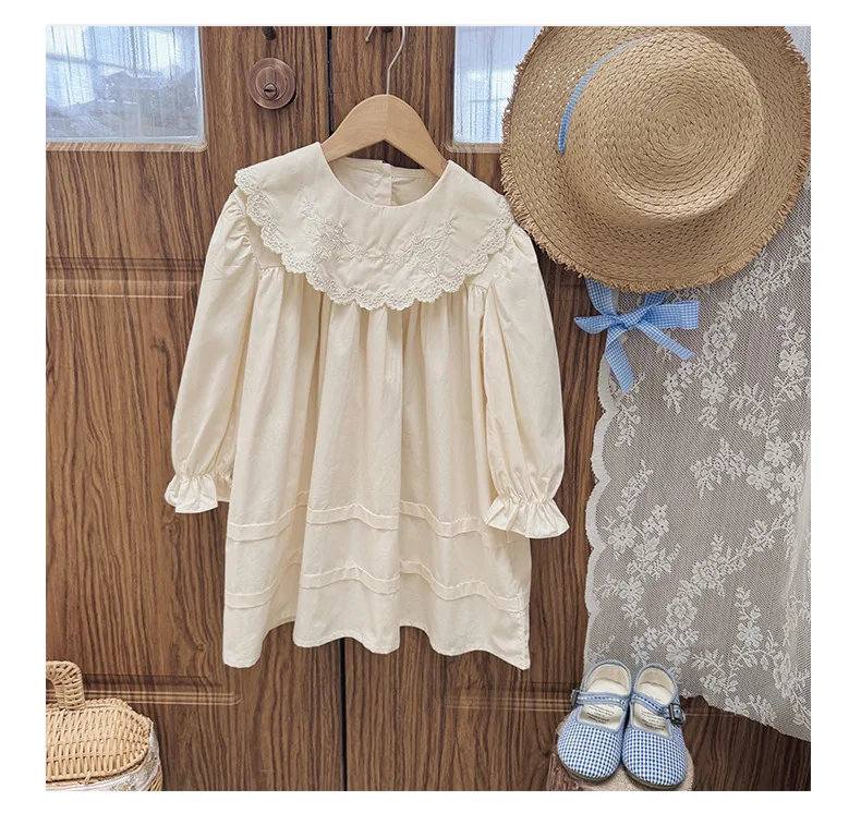 Autumn & Spring Kids Girl Dress Casual 1-6Y Princess Dress with Collar Long Sleeves Solid Pattern Button Decoration for Toddlers