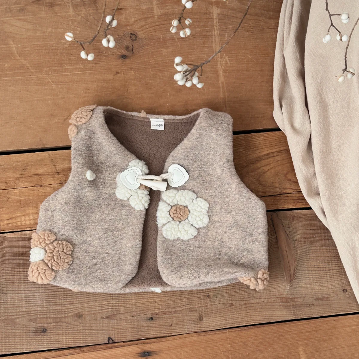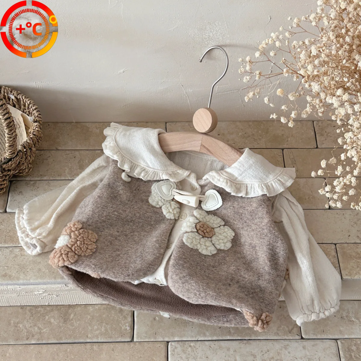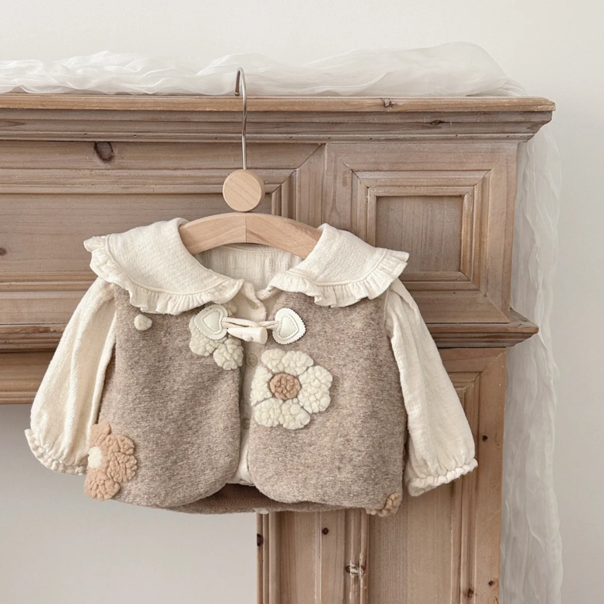 New Baby Girl Regular Tweed Coat Vest | Horn Buttons Worsted Cardigan | Casual Breathable Thick Outerwear for Toddler