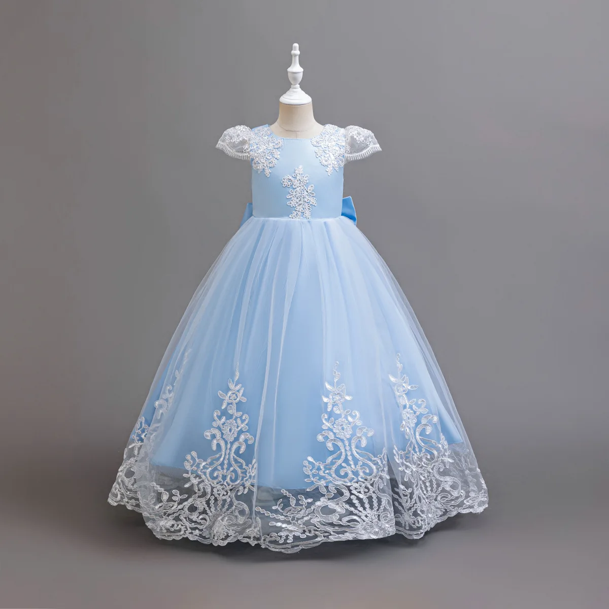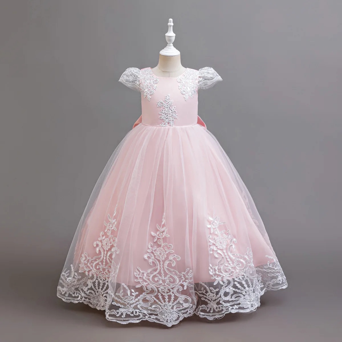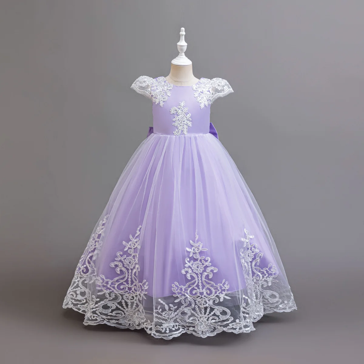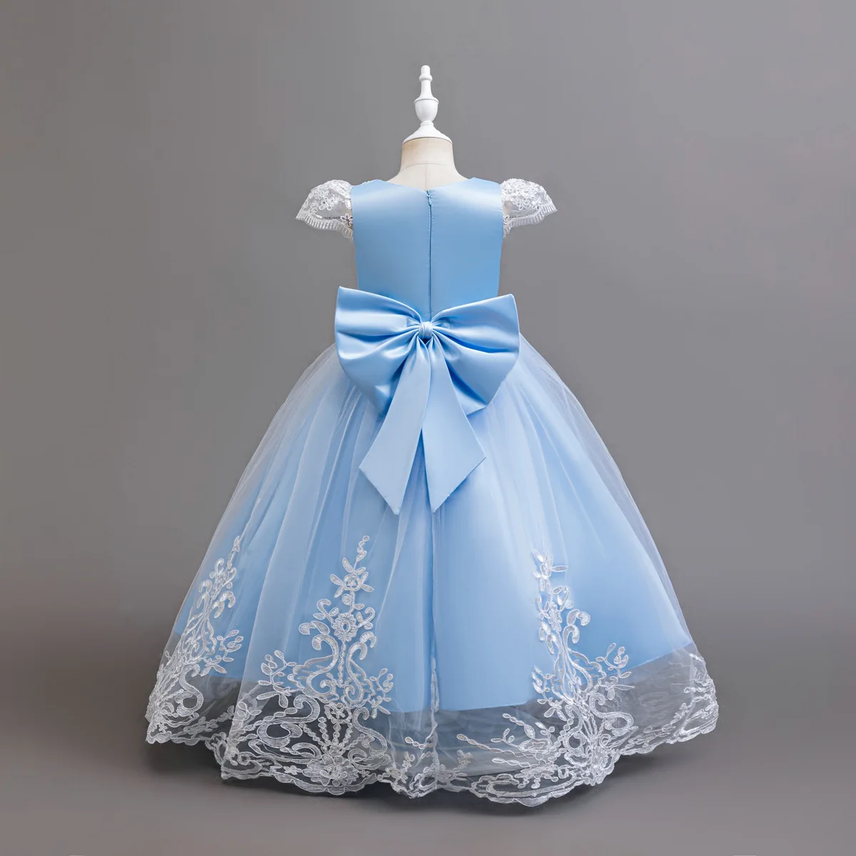 Princess Dress for Baby Girls Solid Maxi Lace Flying Sleeve Bow-Knot Design Plain Dyed for Children's