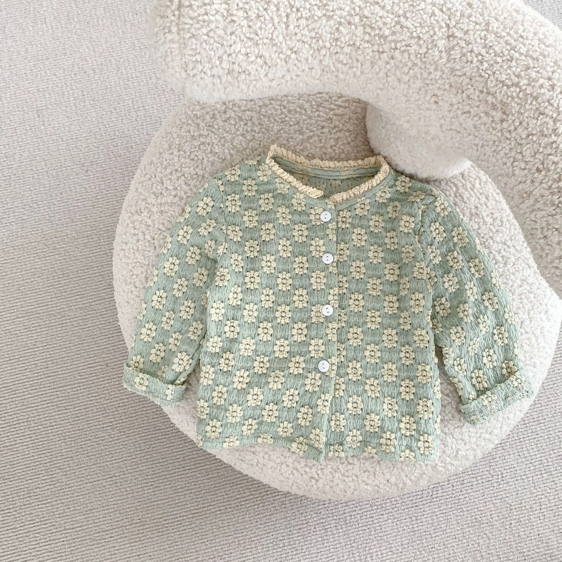 Customizable Two-Piece Summer Set for Baby Girls Casual Knitted Coat and Shorts Small Flower Design Wholesale Option