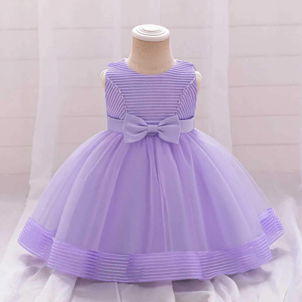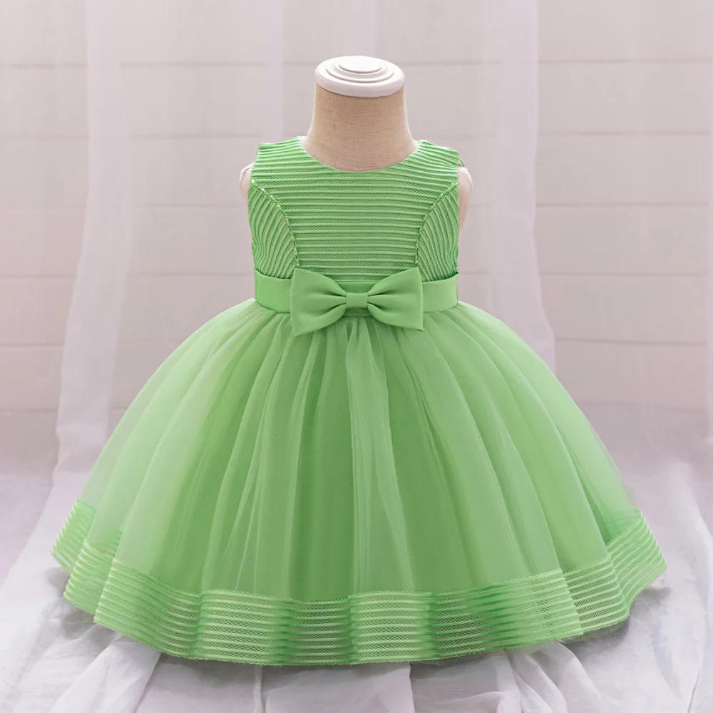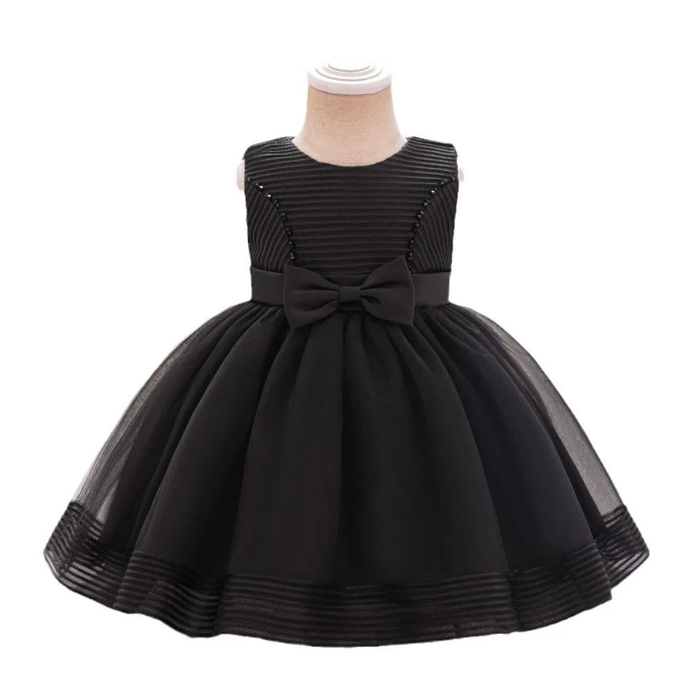 Children's Princess Fluffy Gauze Bow Sleeveless Knee-Length Dress for Little Girls' Wedding Birthday Party and Piano Costume