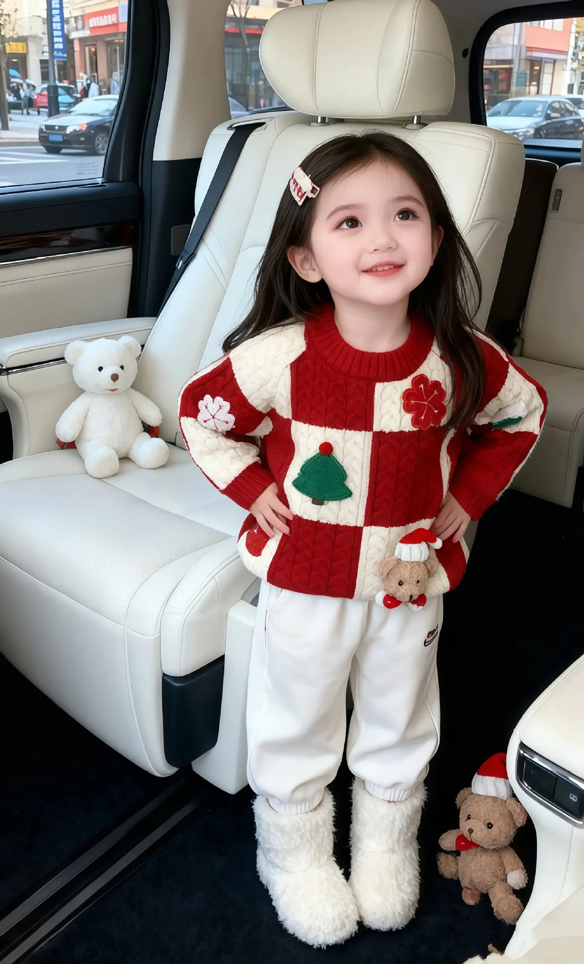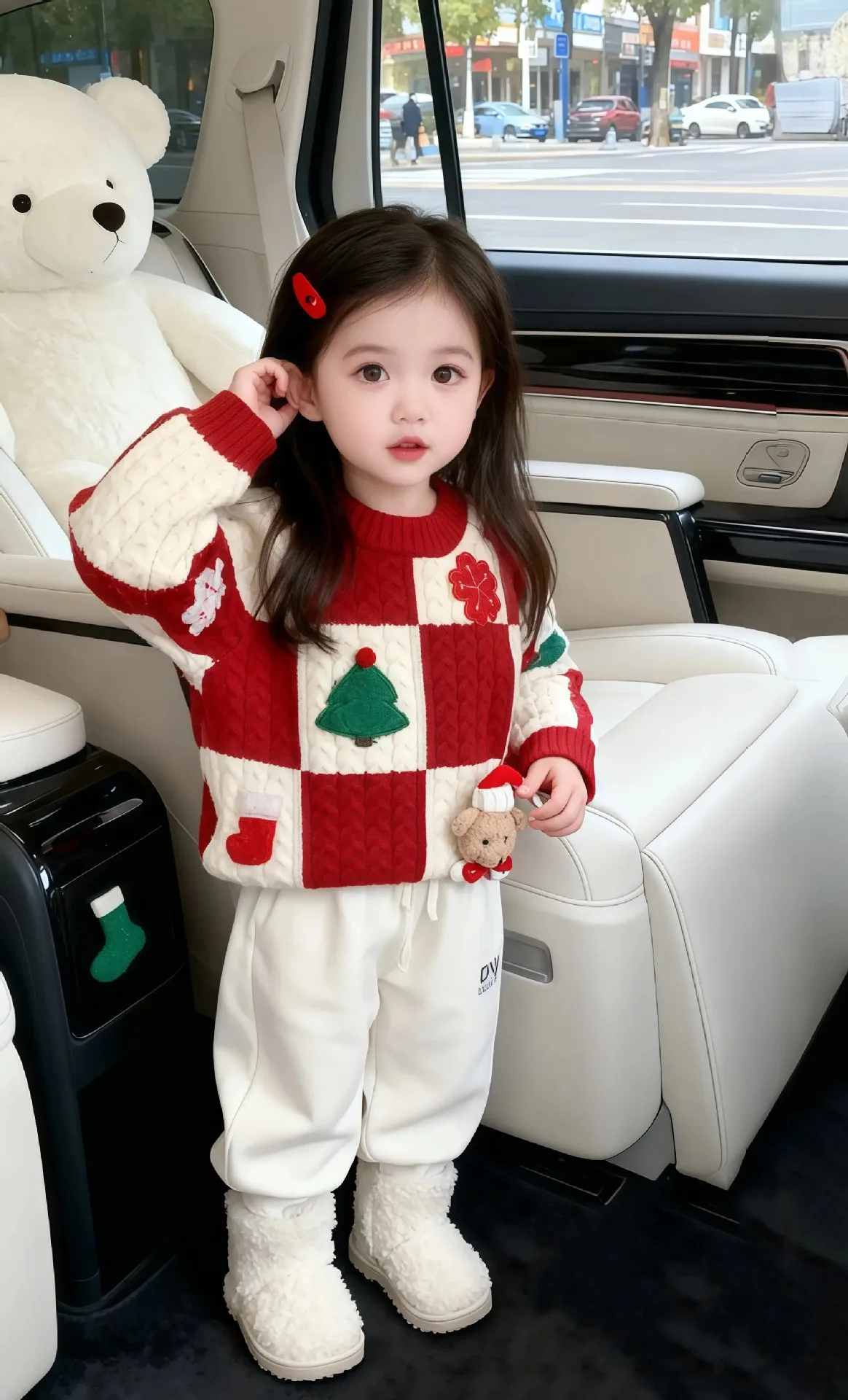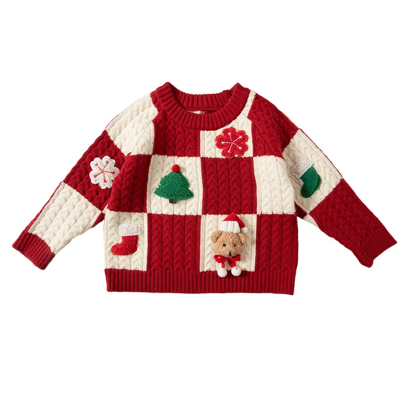 Winter New Children's Casual Knitted Warm Sweater Embroidered Christmas Design for Babies Thickened Comfortable