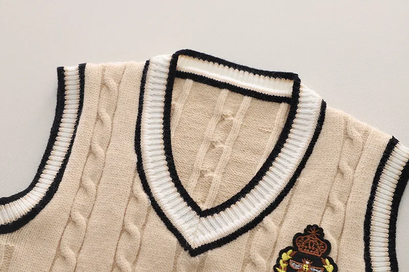 Boys' Girls Babies' Spring Casual Letter Pattern Three-Piece Suit Set Cotton Sweater Vest Pleated Skirt