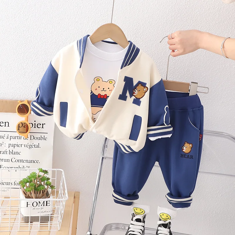2023 New Arrived Toddler Baby Boy Casual Spring Fall Clothing Cotton Long Sleeved Shirt +Jacket+ Denim Jeans 3Pcs Set