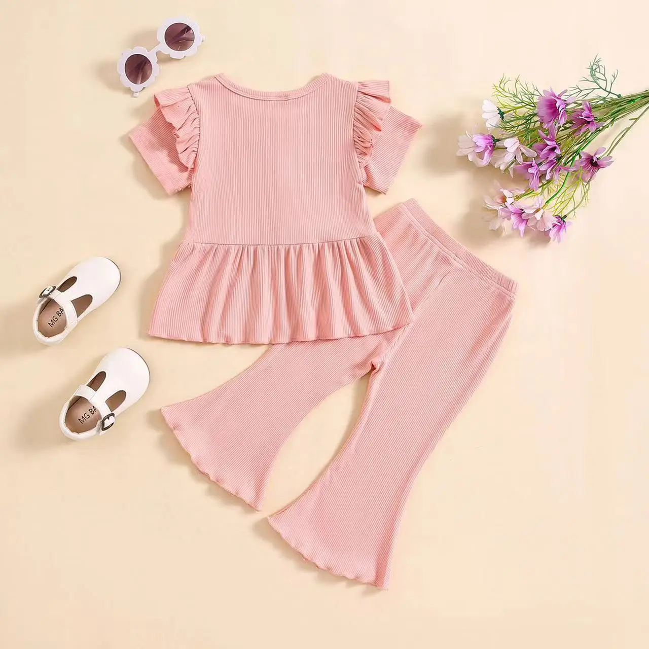 Girls Clothing Sets 3-4 Years Short Sleeved Printed Long Flare Pants Sports Set for Girls Cheap Girls Clothing Sets