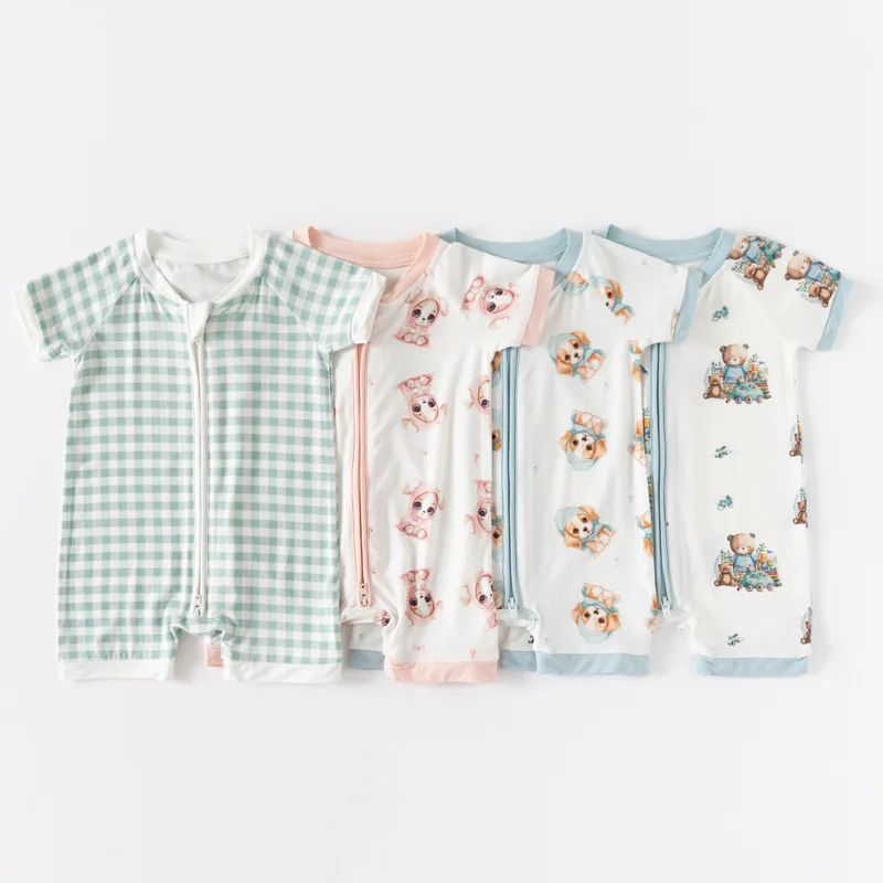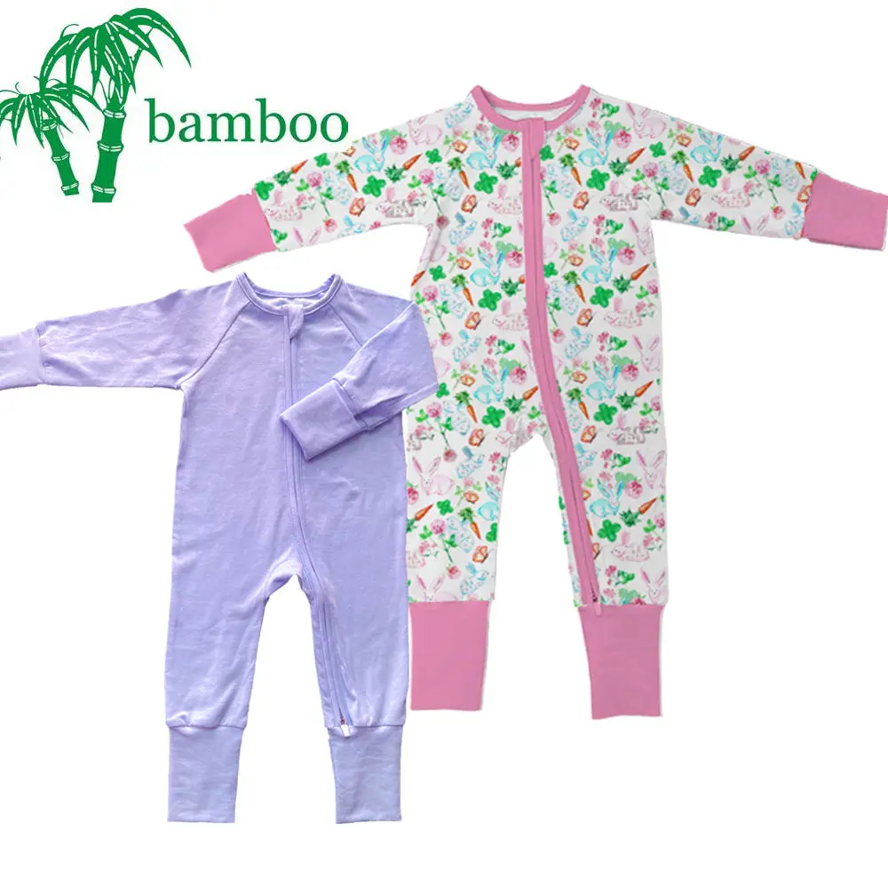Unisex Custom Printed Bamboo Baby Rompers Breathable Knitted Long Sleeve Baby Clothes With Zipper Closure Western Style Summer
