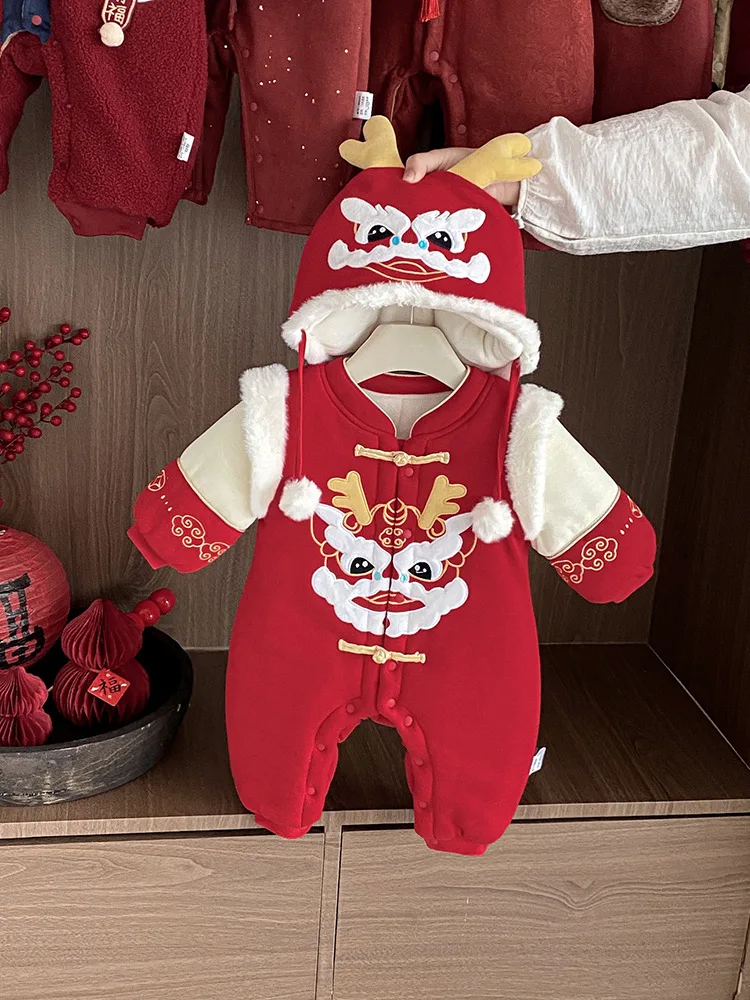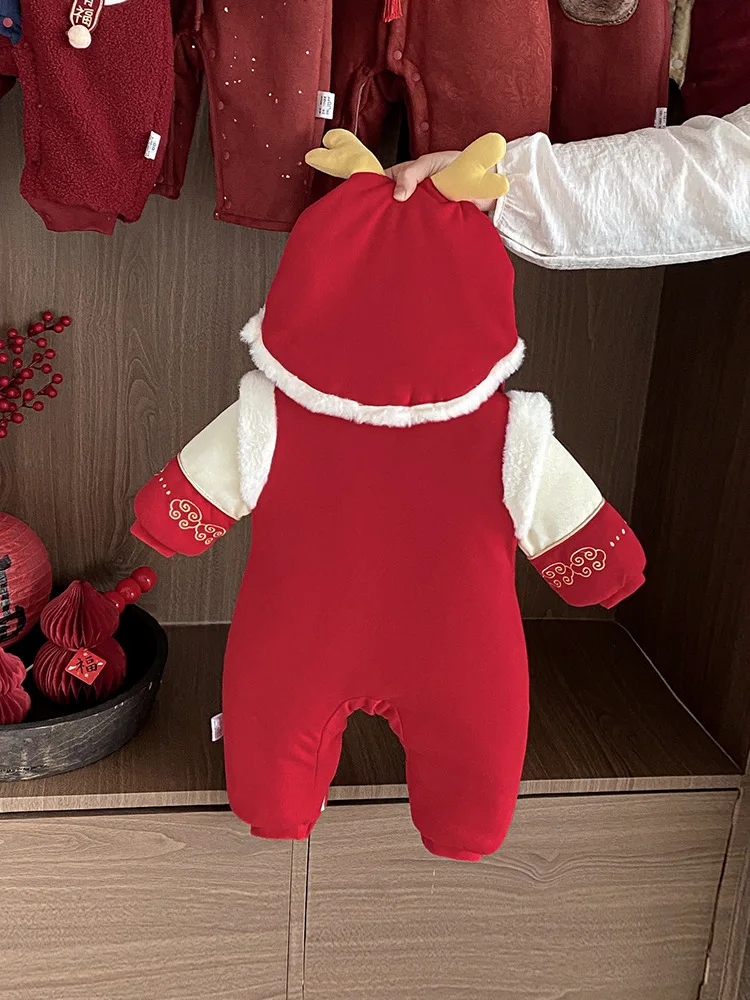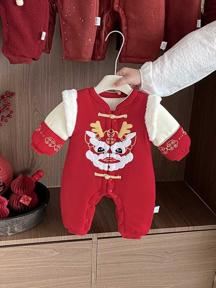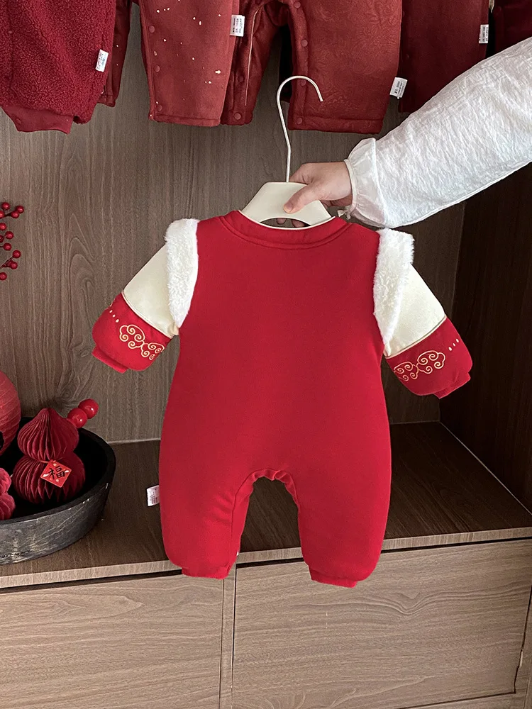 Baby Clothes Winter Unisex One-piece Rompers Thickened Full Moon One Hundred Days New Year's Ethnic Style Button