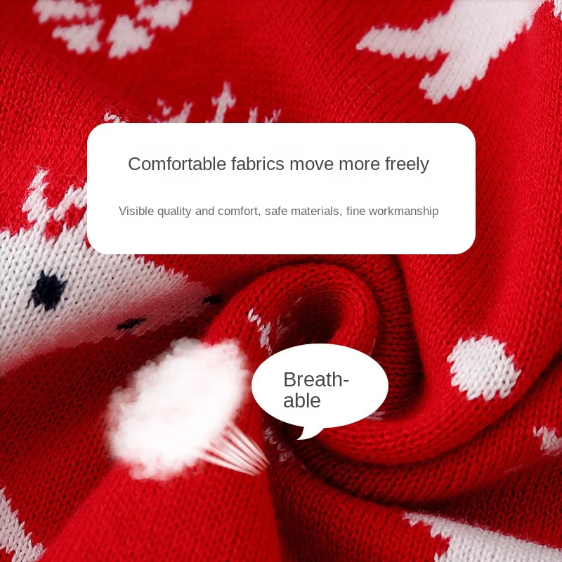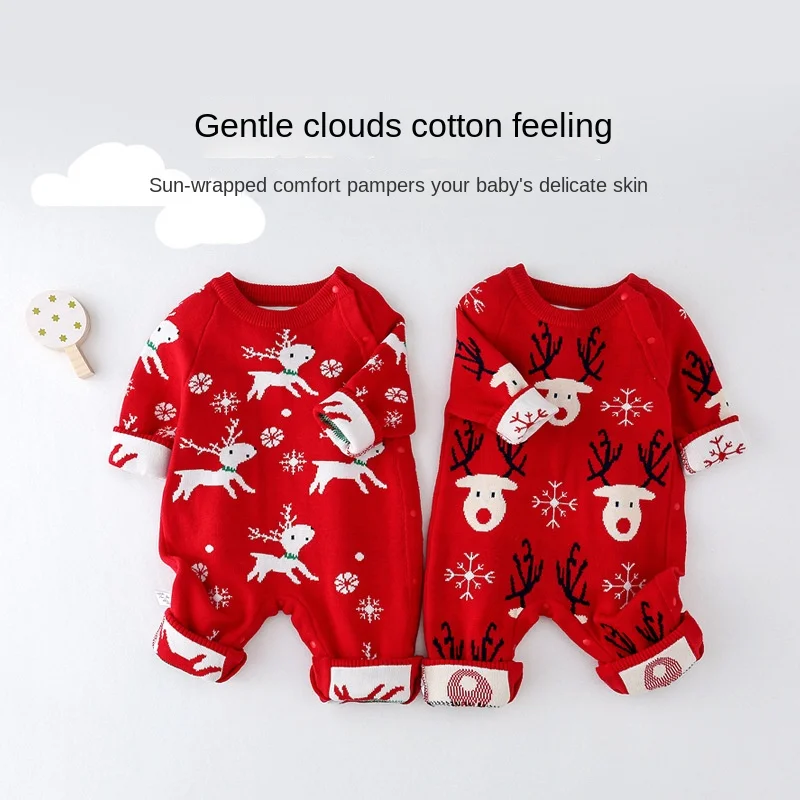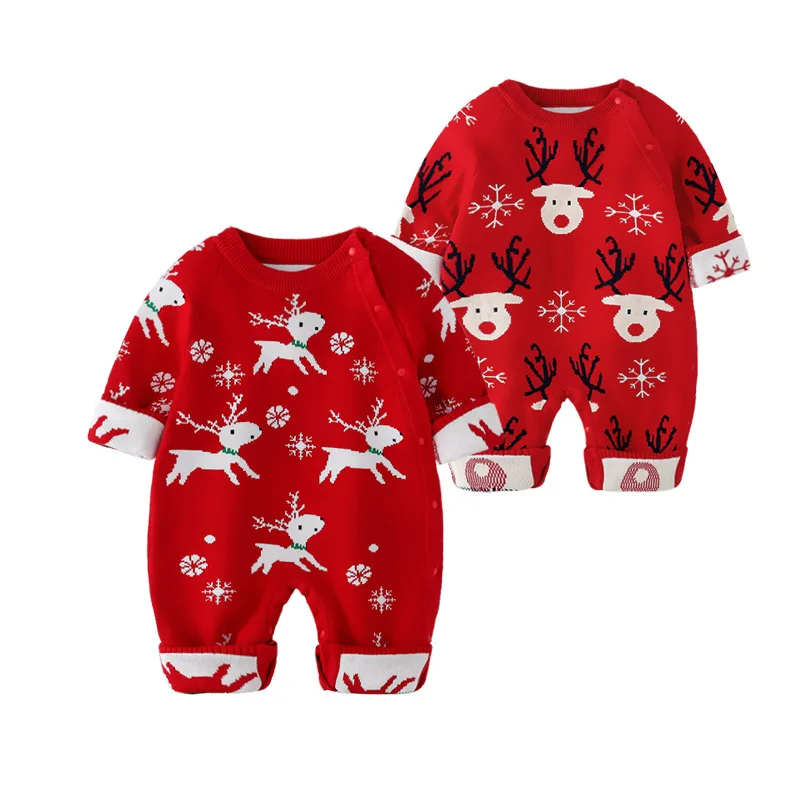 Baby Jumpsuit Winter Warm Knitted Animal Print 100% Cotton Unisex Infants & Toddlers Red