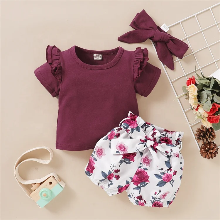 Long Sleeves and Short Sleeves Baby Romper Set Infant Clothing Broken Flowers 100% Cotton Baby Girls' Clothing Sets