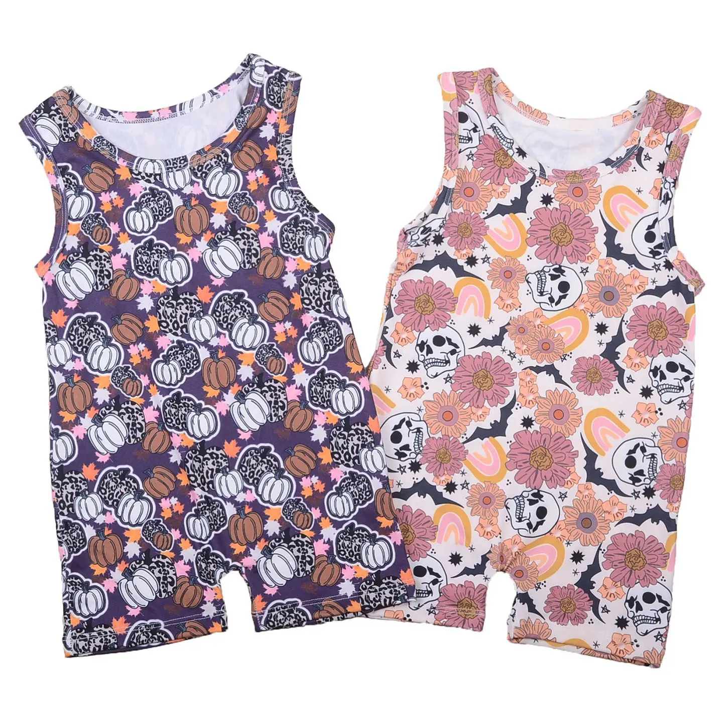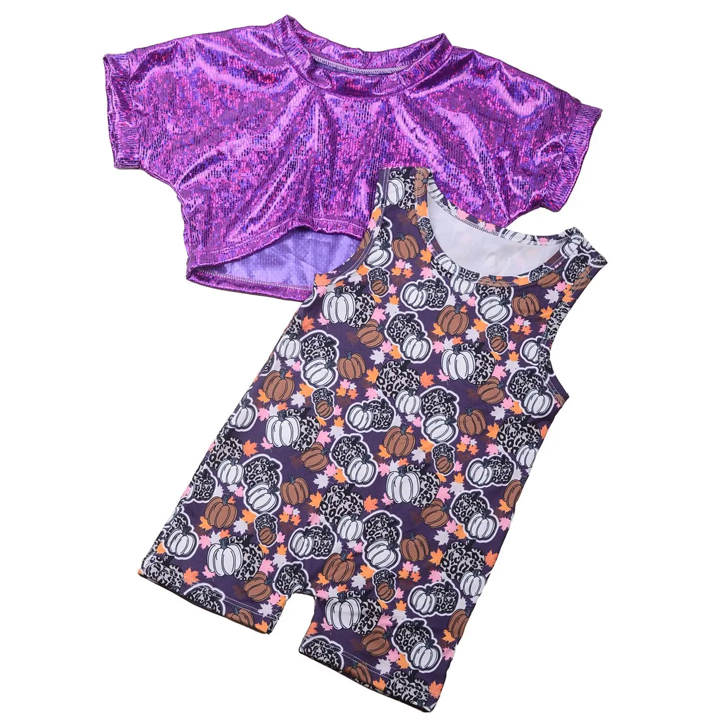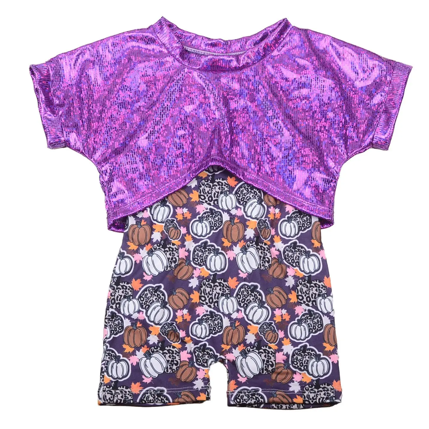Wholesale Customization Halloween Day Sublimation Set Babys Romper and Purple Leather Material Short Sleeved Top Sets